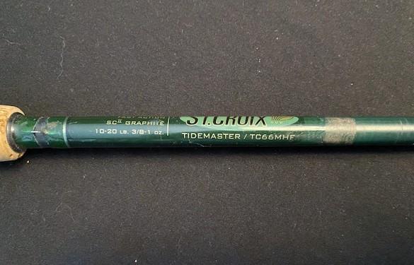 Rod is a Saint Croix Tidemaster TC66MHF. Rod is 6' 6" long. Reel is an Abu Garcia Ambassador 6000. Reel made in Sweden.