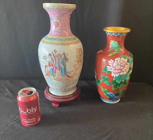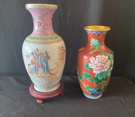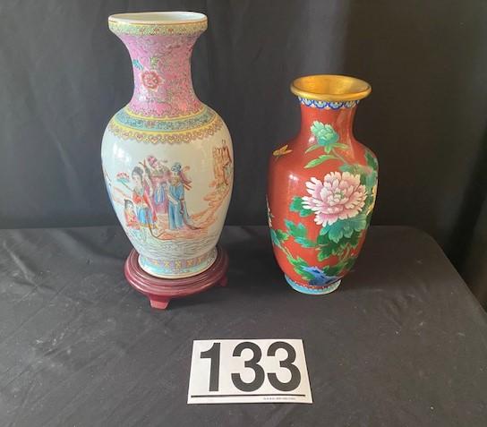 LOT#133LR: Cloisonne & Painted Asian Vases