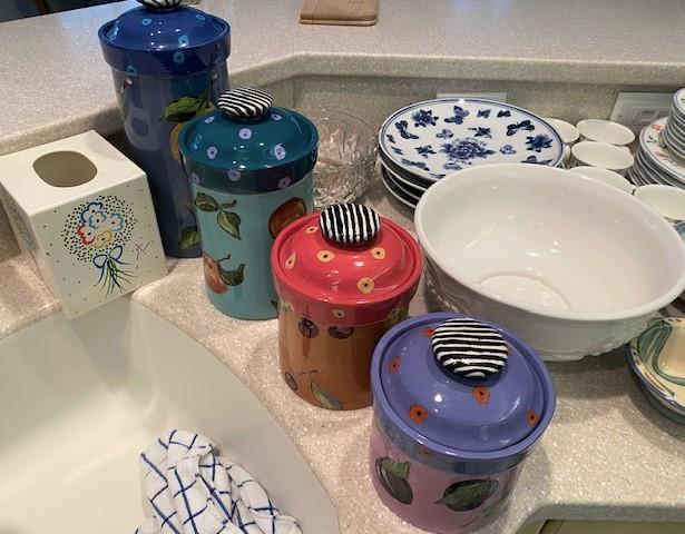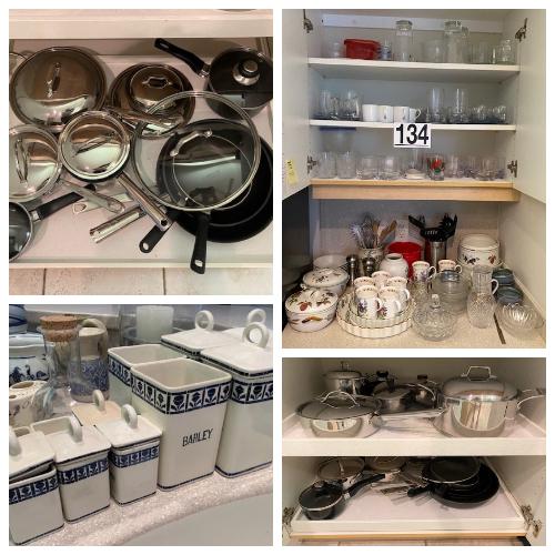 Includes glassware, spice racks, Cuisinart and Emeril cookware, dinnerware sets, canisters, and more.