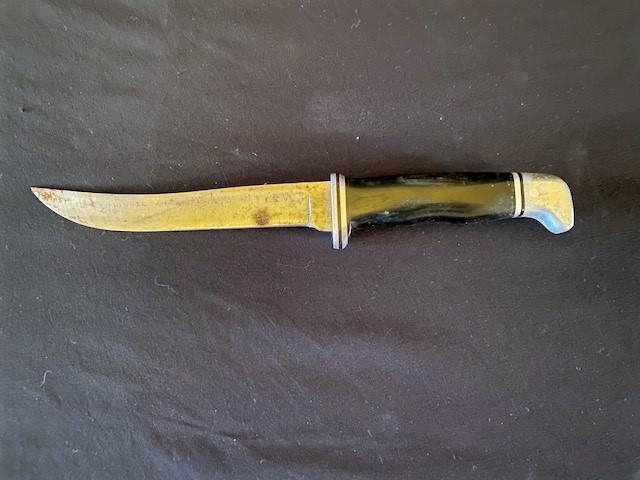 Includes original leather sheath. Measurement: 10 1/2"L (with sheath)