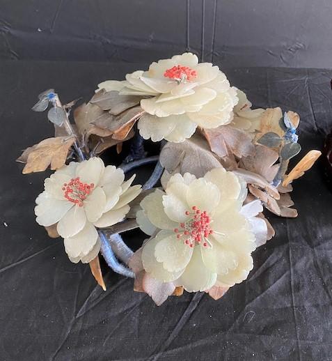 Measurement: 12 1/2"L (cinnabar) 13"diameter (jade ring)