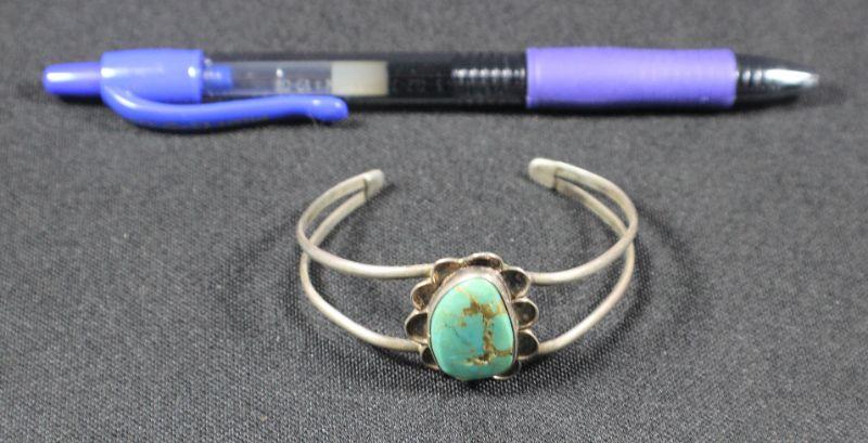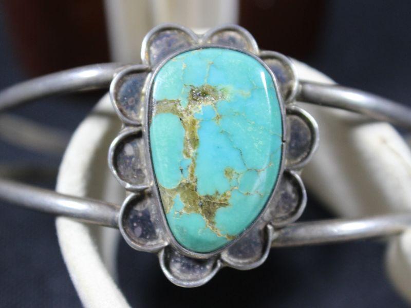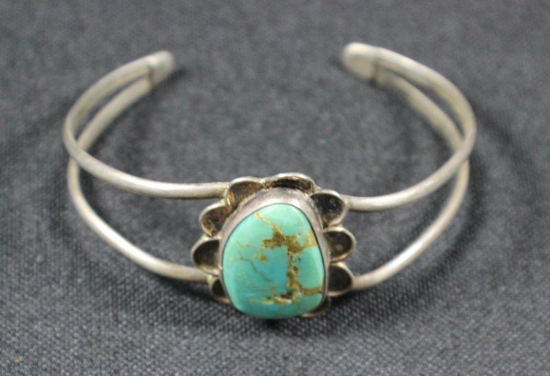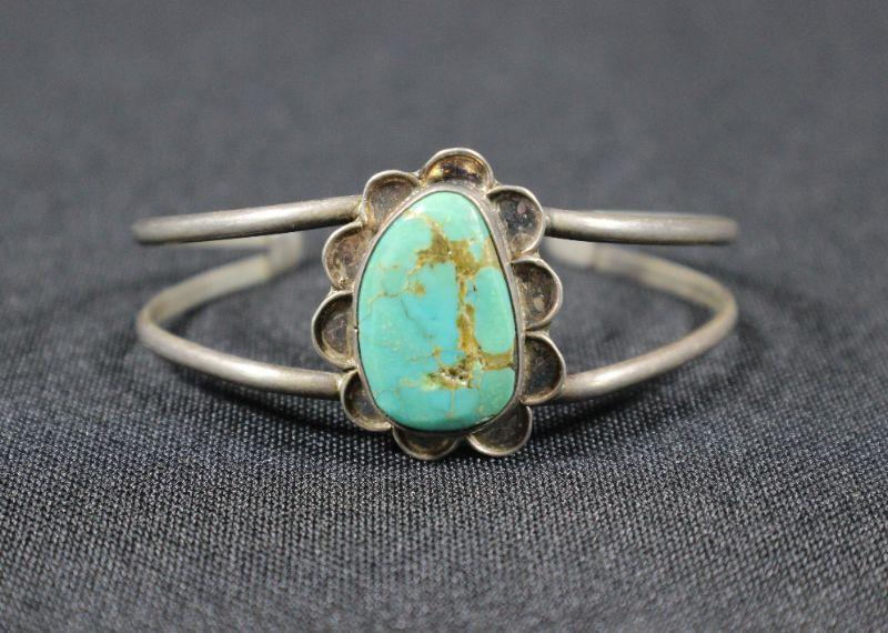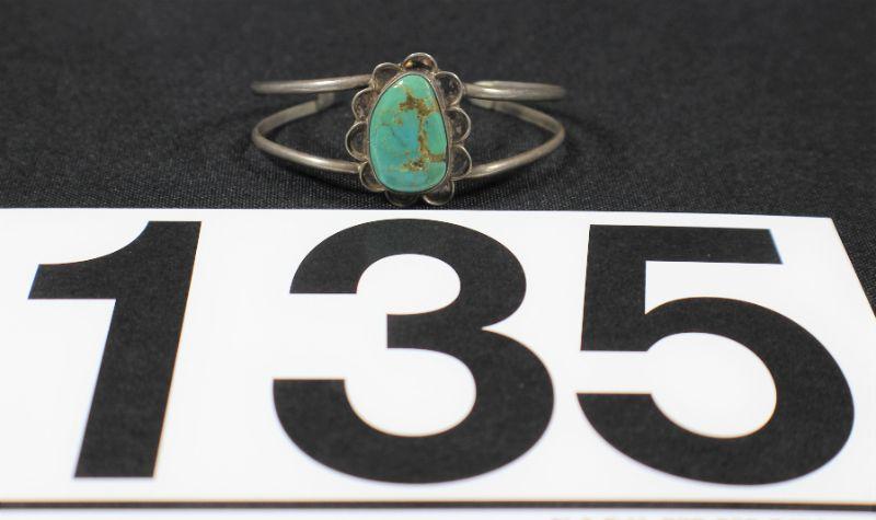 LOT#135: Unmarked Sterling & Turquoise Bracelet