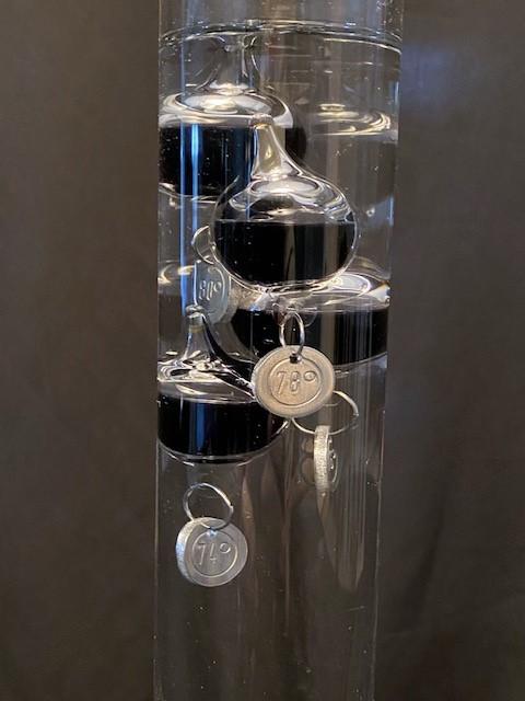Blue floating balls. Measurement: 18"H x 3"Diameter (base)