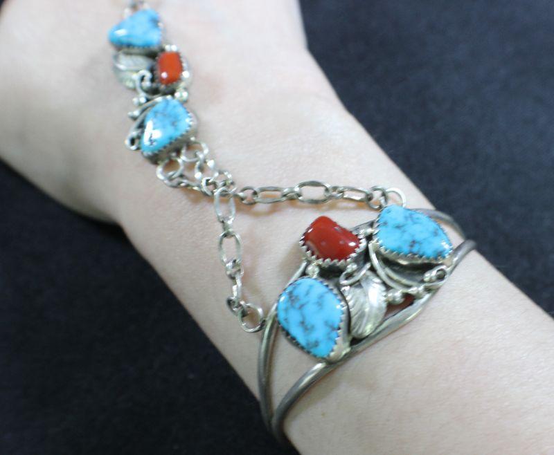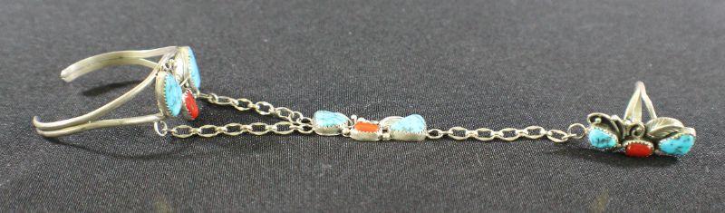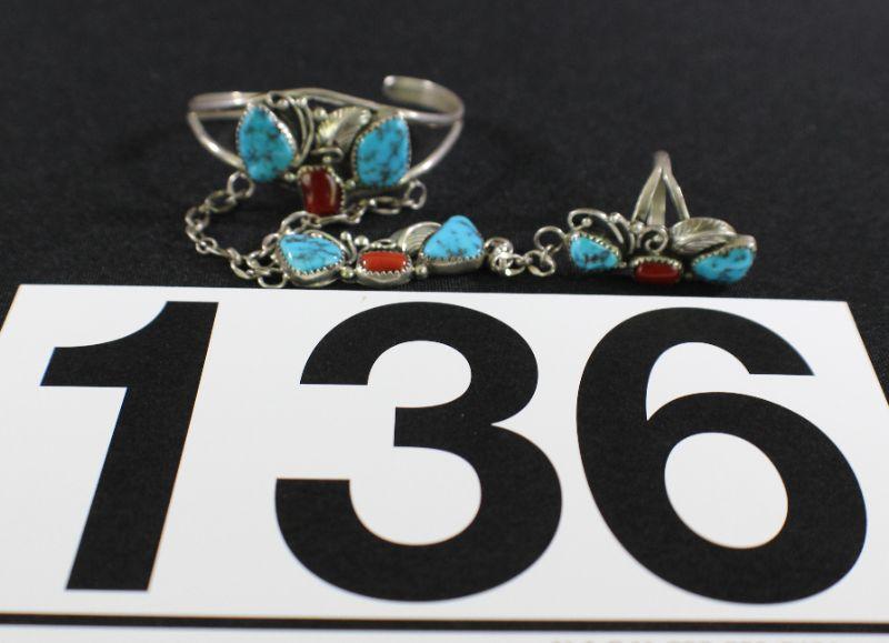 Marked Sterling. 24g total weight. Bracelet measures 6.5". Ring Size 7.5. Chain length 5".