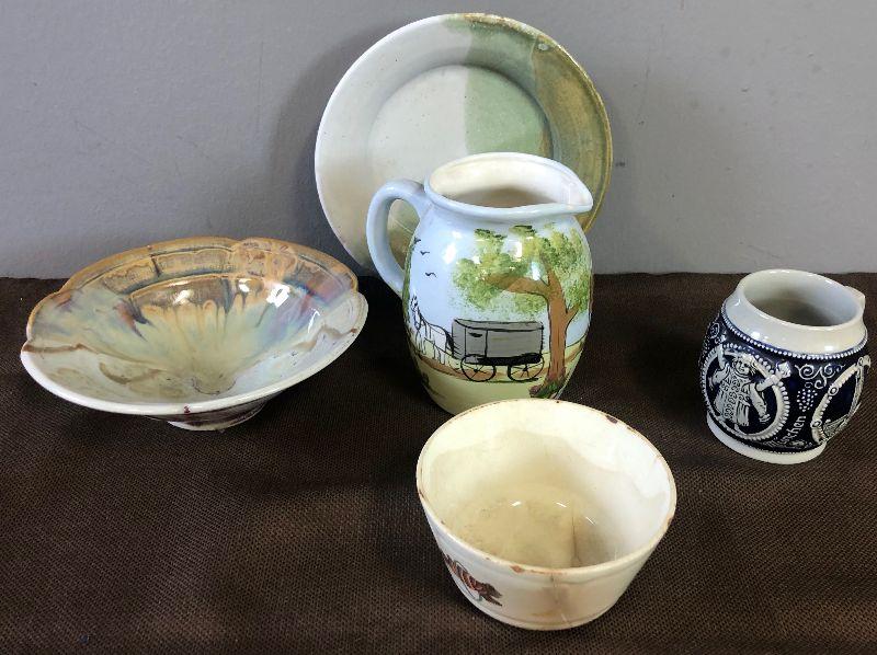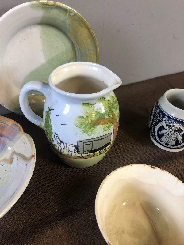 Lot#137 Amish Pitcher, German mug, pottery bowls