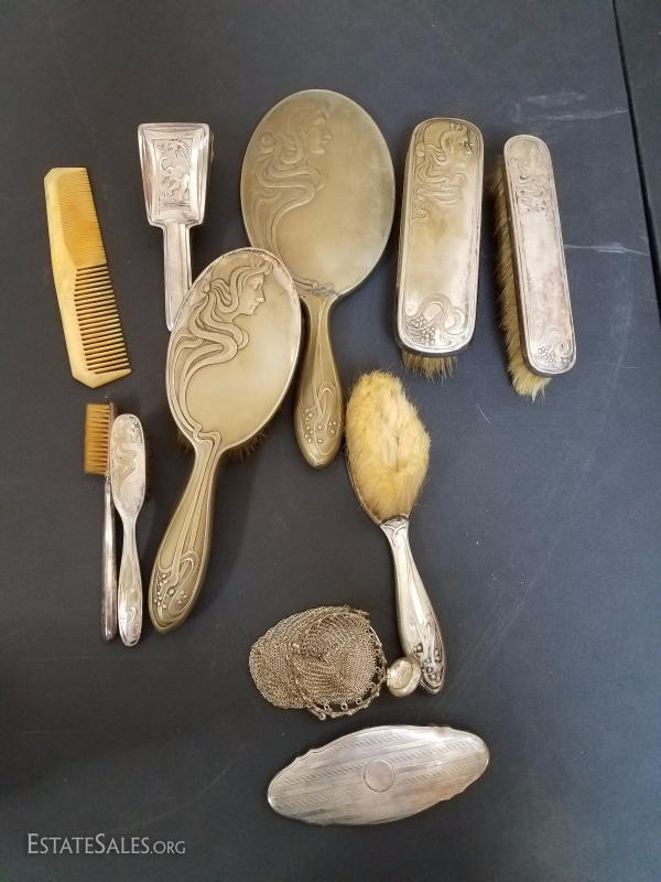 Lot-137 Antique Silver Vanity Brush Set 11pc