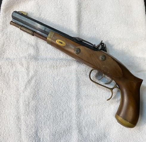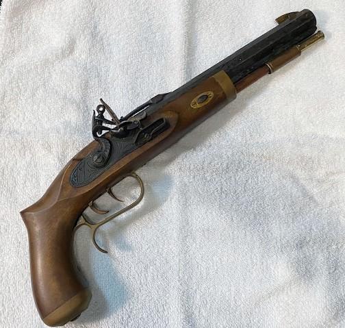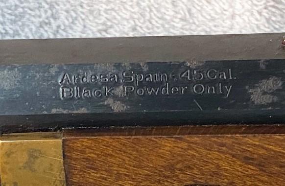 Made in Ardesa, Spain. Some rust on barrel. Barrel approximately 10"long. Flintlock has serial number.
