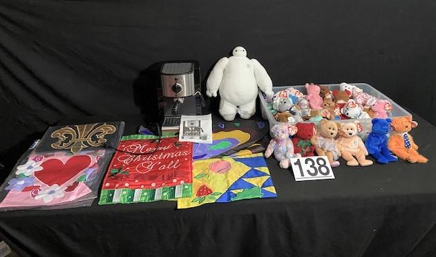 Includes: Capresso EC100 Espresso & Cappuccino Machine, assorted Beanie Babies collection & holiday/festive flags.