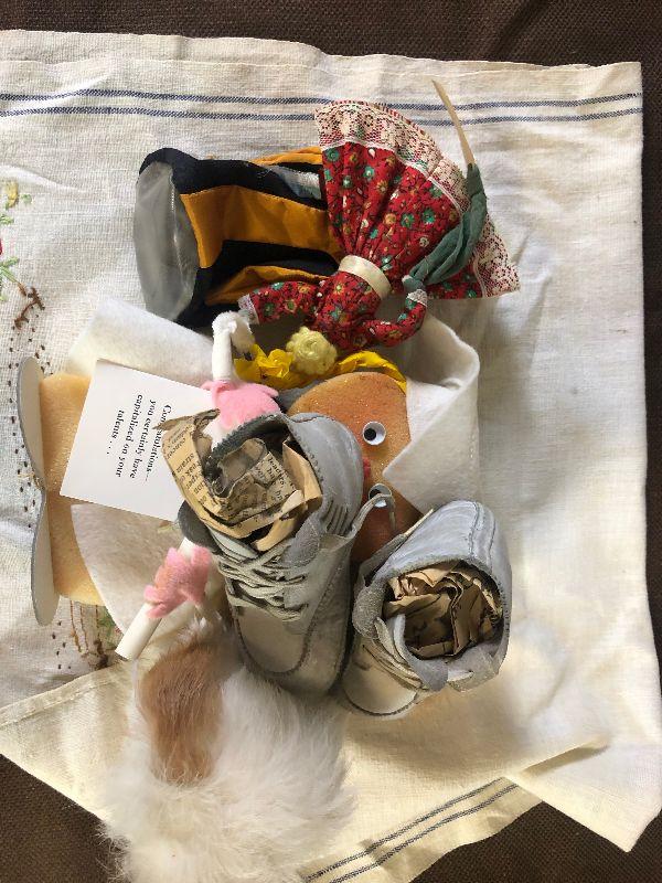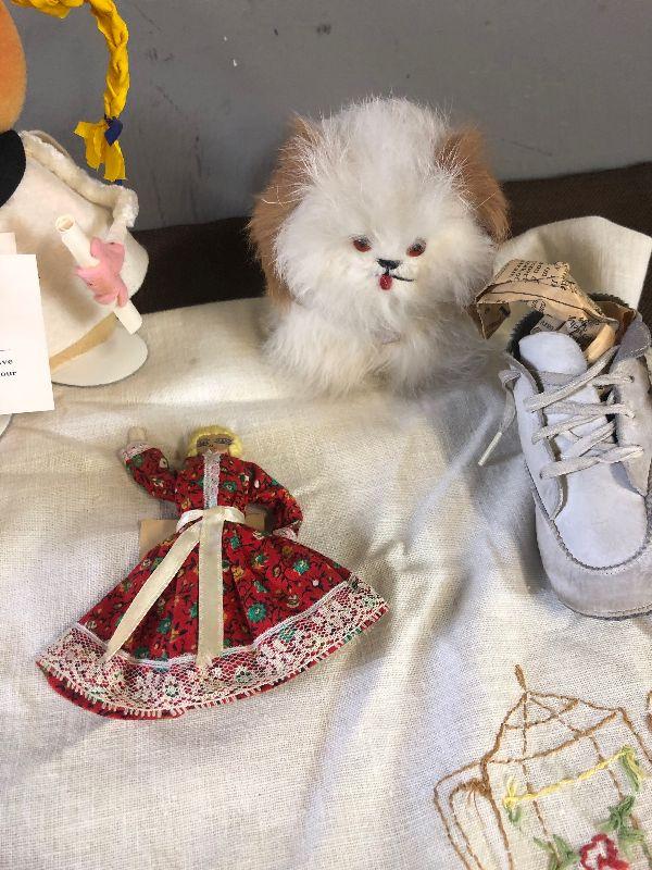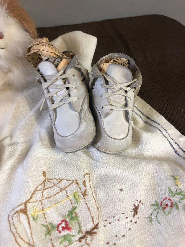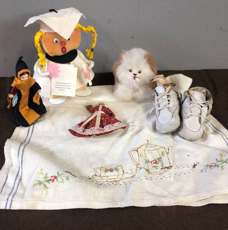 Lot#139 Dolls, Vintage linen, baby shoes