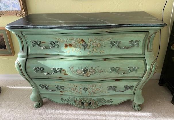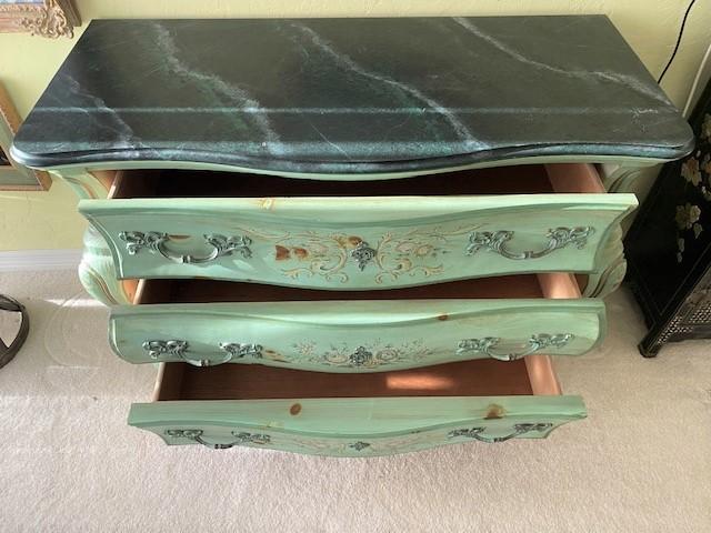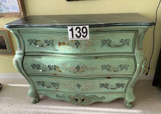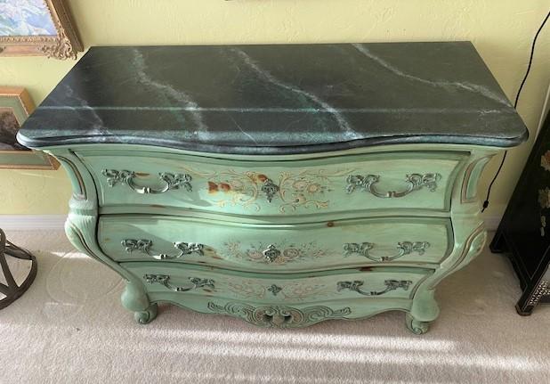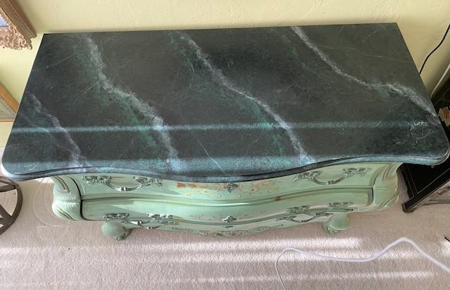Appears to be faux marble top. Estimated weight of lot: 125lbs. Measurement: 32"H x 44"W x 20"D