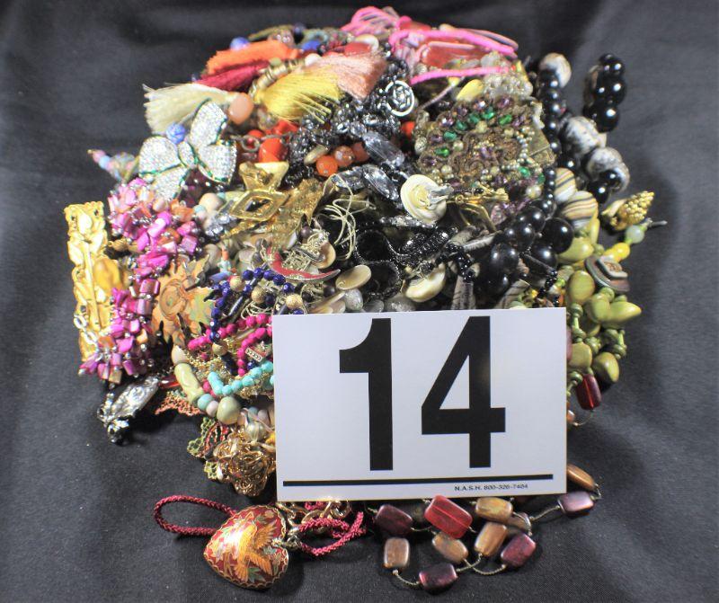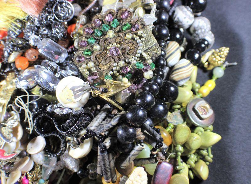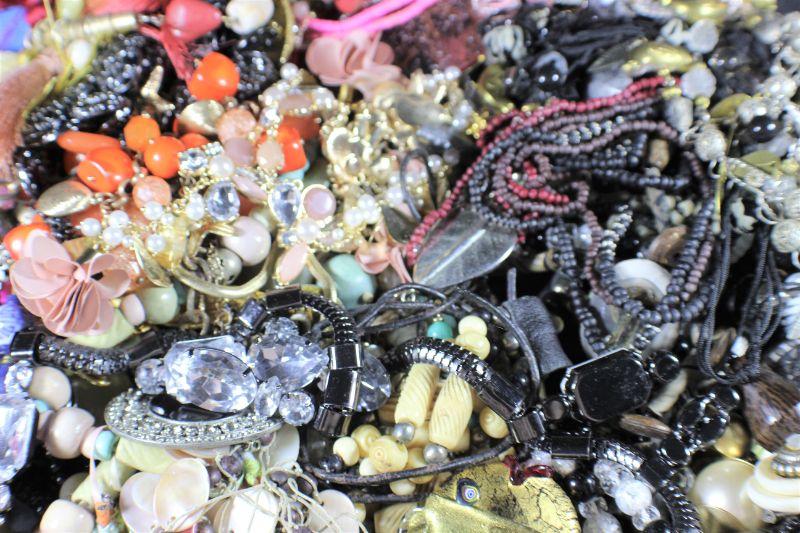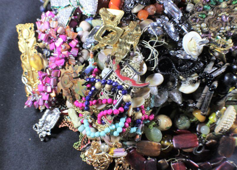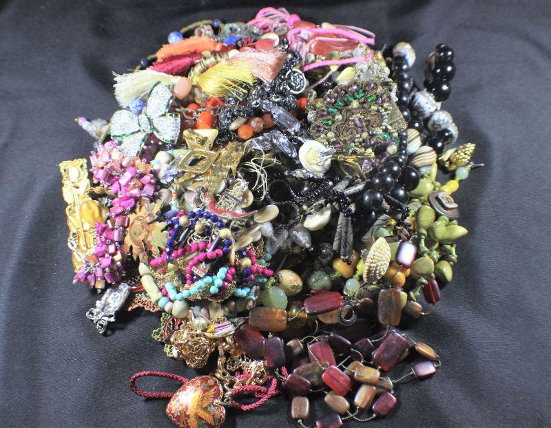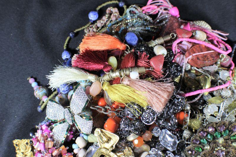 Mixed Assortment of necklaces, earrings & more. Bag size: 2.5 gallons. Estimated total lot weight: 8lbs.