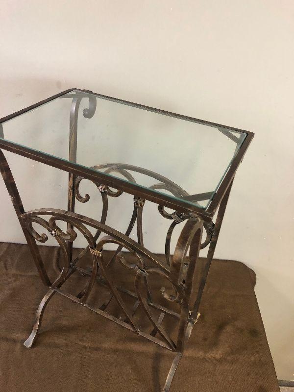 Lot#141 Glass Top Wrought Iron Magazine Table Rack