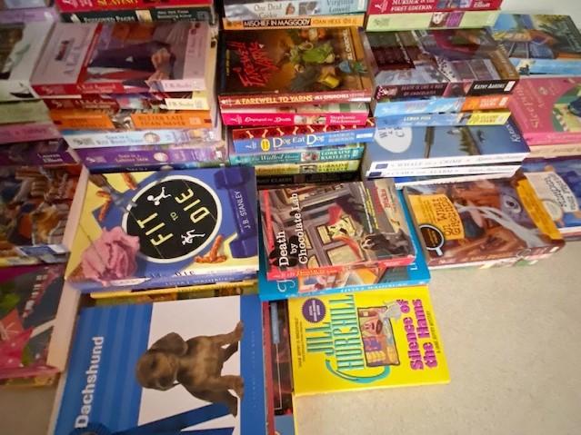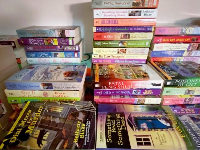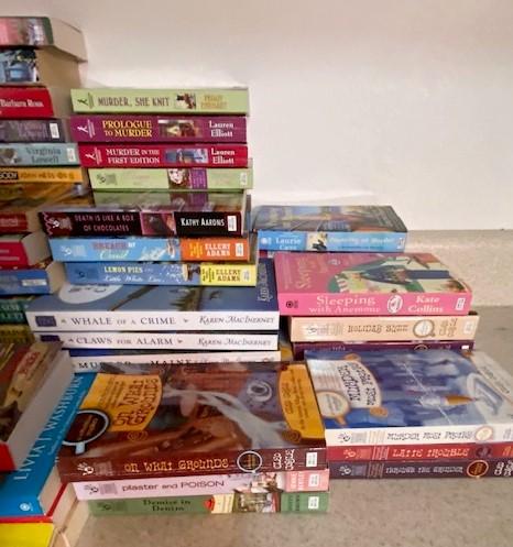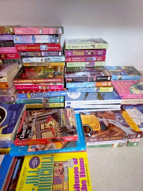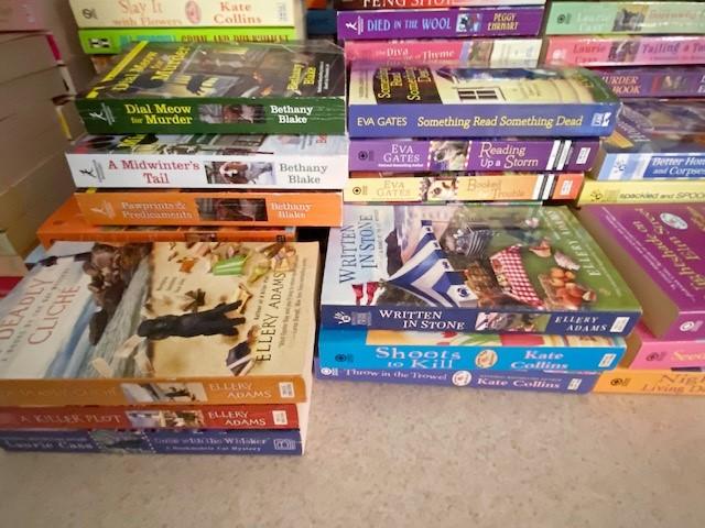 150+ books. Mostly "cozy" style bakery mystery books. Assorted authors include: Josie Belle, Kate Collins, Laurie Cass, Bethany Blake,, Eva Gates, Olivia Washburn, Jenn McKiney, Barbara Ross, Laurine Bartlett, Jenny Bentley & more.