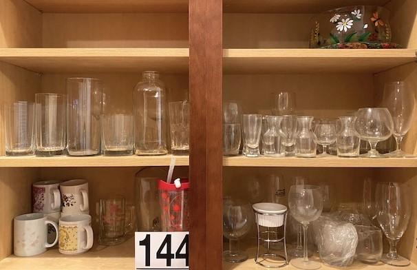 LOT#144K: Cupboard Lot of Assorted Glassware