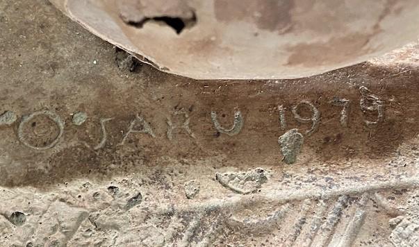 Signed "Ojaru 1978". Terracotta texture. Measurement: 17"H x 12"W x 7"D