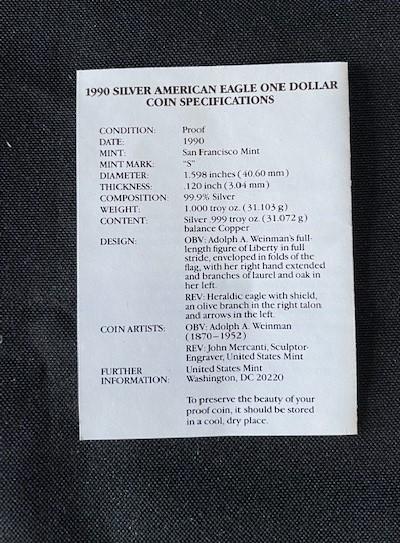 LOT#146: 1990-P American Silver Eagle Proof