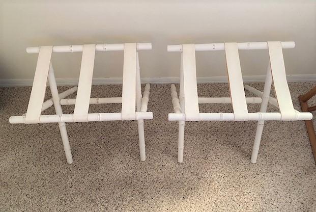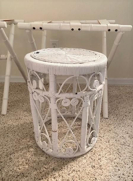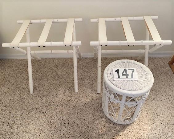 LOT#147B2: 2 Bamboo Luggage Racks & Wicker Plant Stand