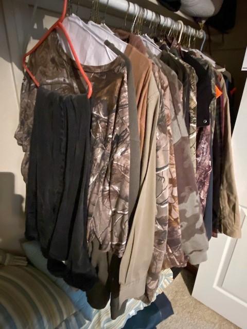 Hunting clothes from Cabela's, Redhead, Under Armor, Tommy Bahama, and more. Mostly size 3x and 4x. Sleeping bags, air mattress, and more.