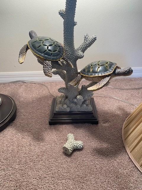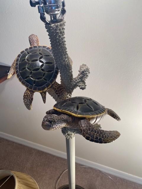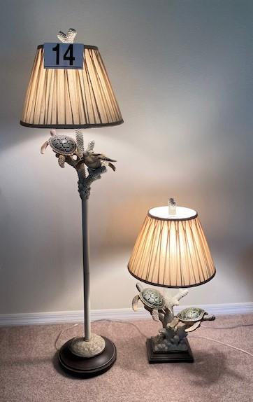 One table lamp and one floor lamp. Turtle motif. Working at time of cataloging. Measurement: 60"H (tallest) 17"W (lamp shade)
