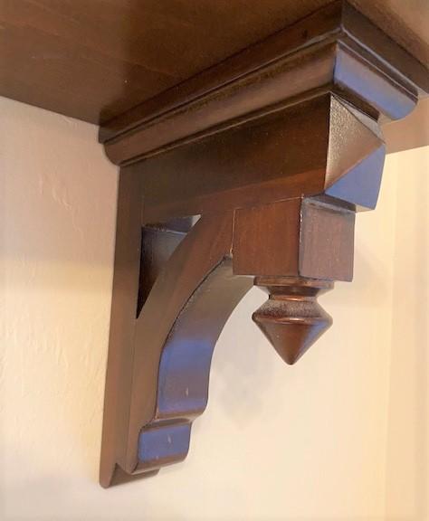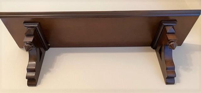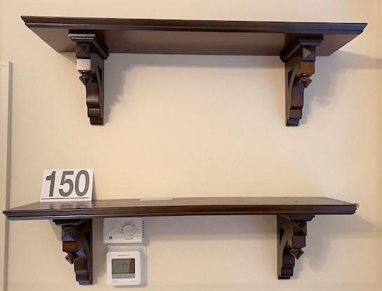 LOT#150K: Pair of Dark Wood Shelves with Finials