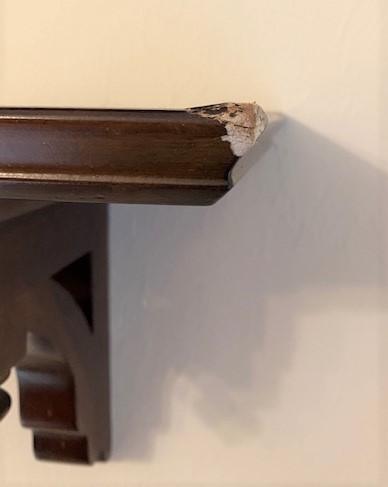 One corner damaged. Measurement: 33 1/2"W x 8"D