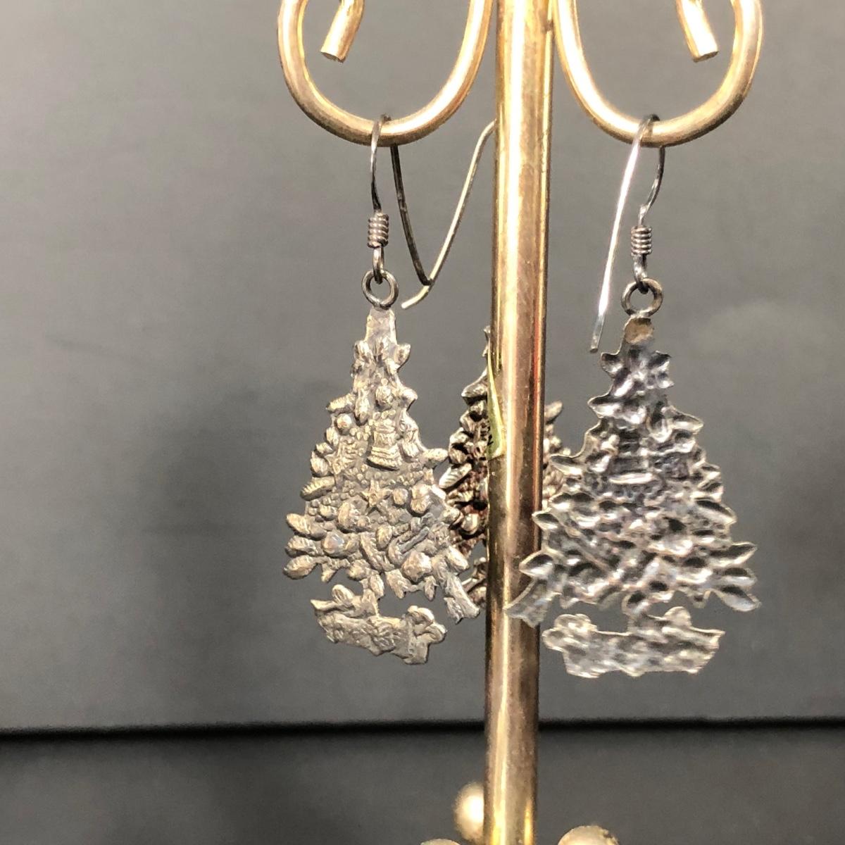 Includes 2 crystal snowflake necklace with silver toned chain, two pairs of silver toned Christmas tree pierced earrings and six crystal keychains.