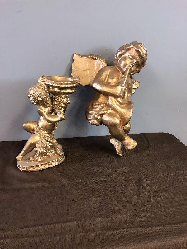 Lot#153 Angel Paper Mache' & Ceramic Cherub