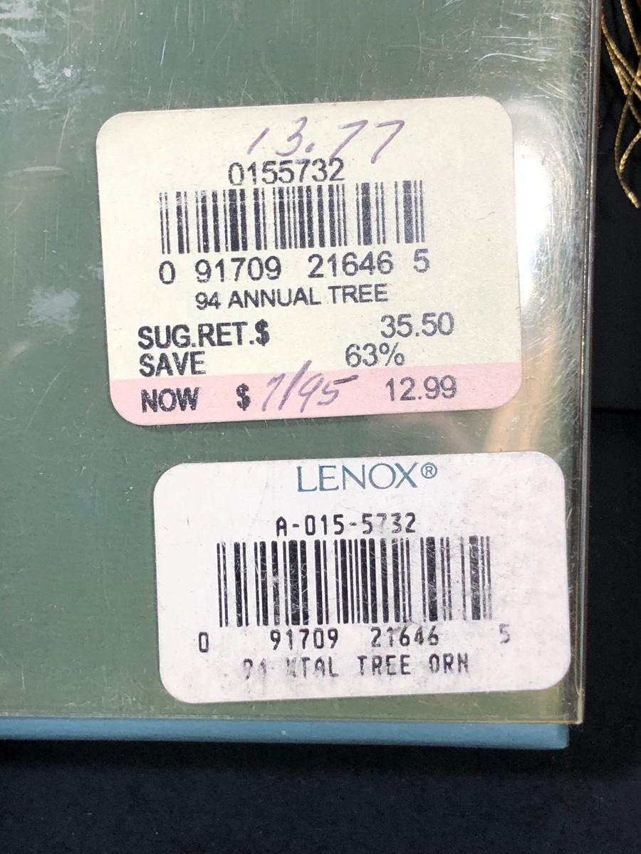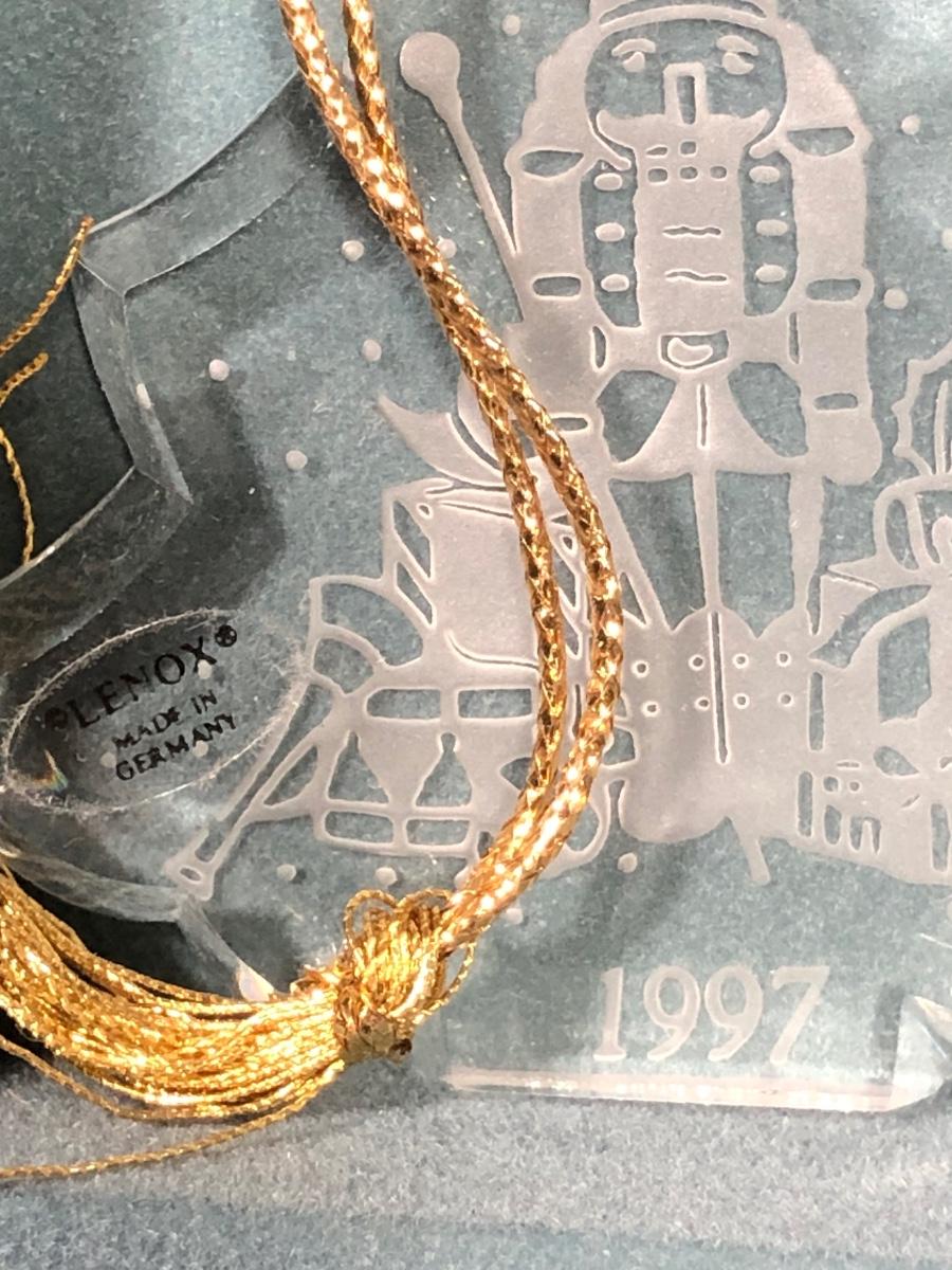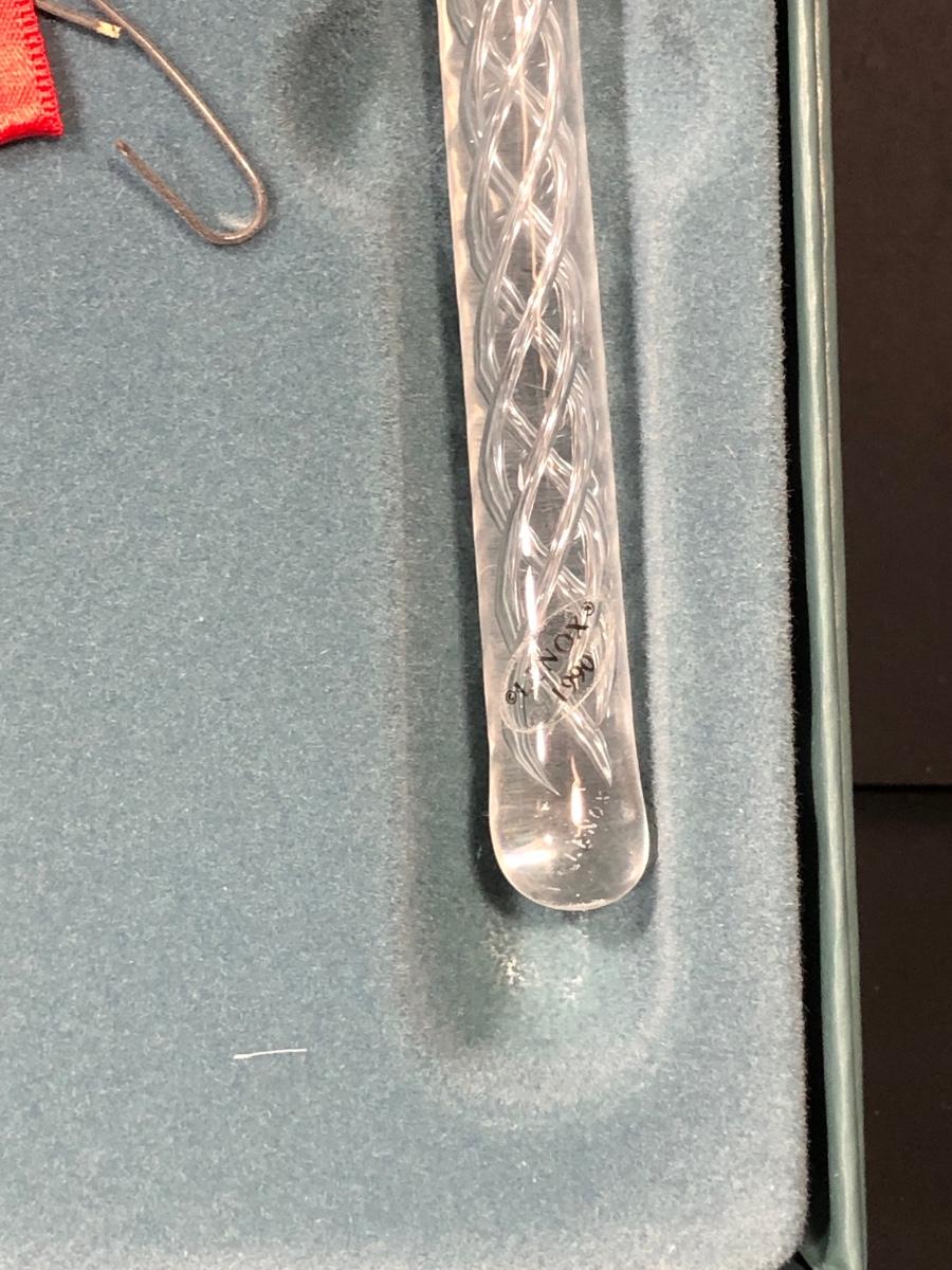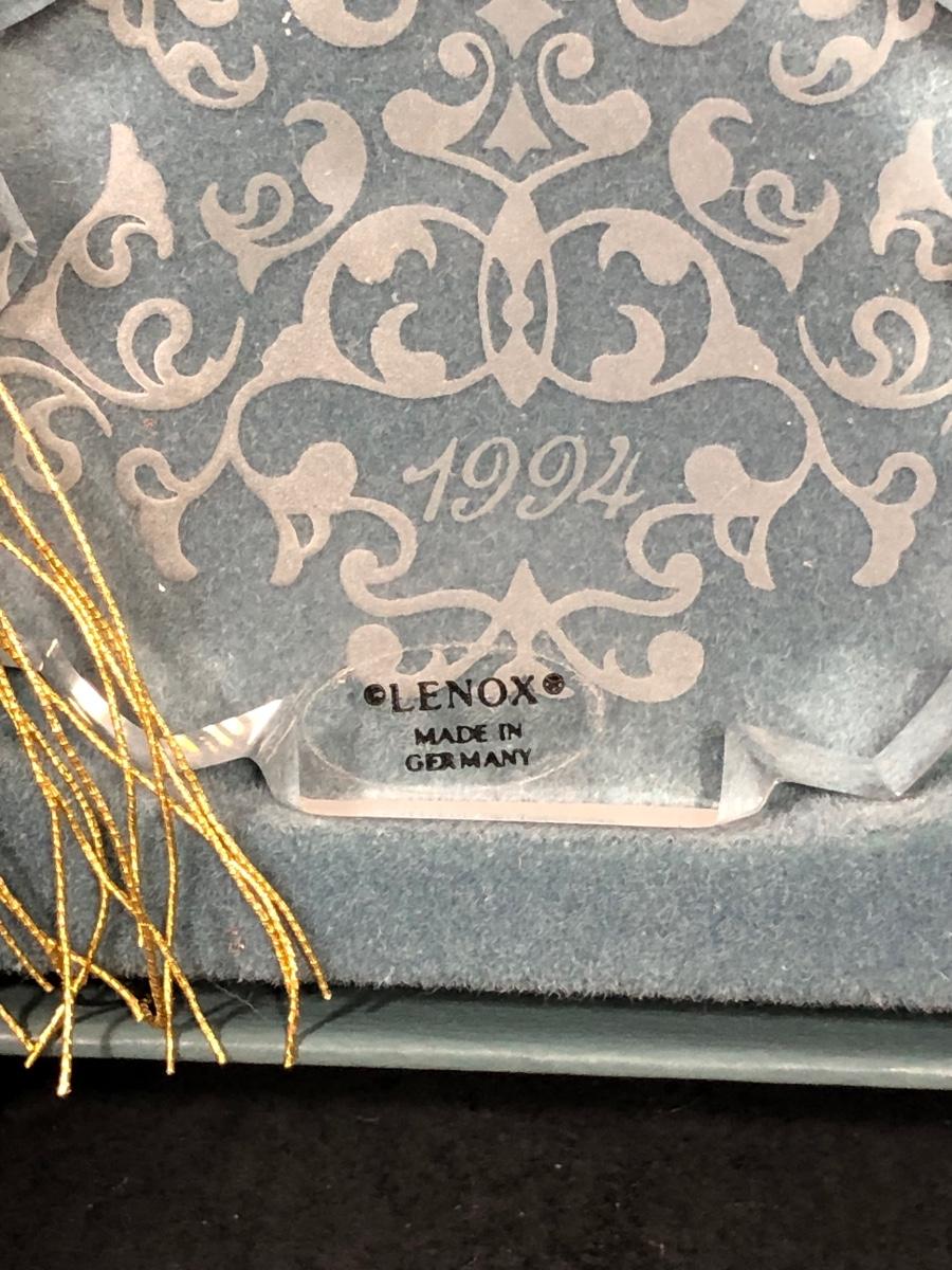 Includes 5 crystal icicle ornaments (four in box, one out of box) and a crystal candy cane ornament in its box. Also includes two Annual Tree ornaments from 1994 and 1997. All made by Lenox.