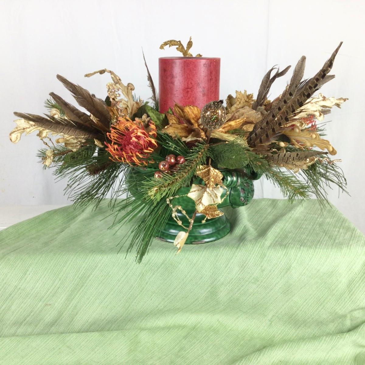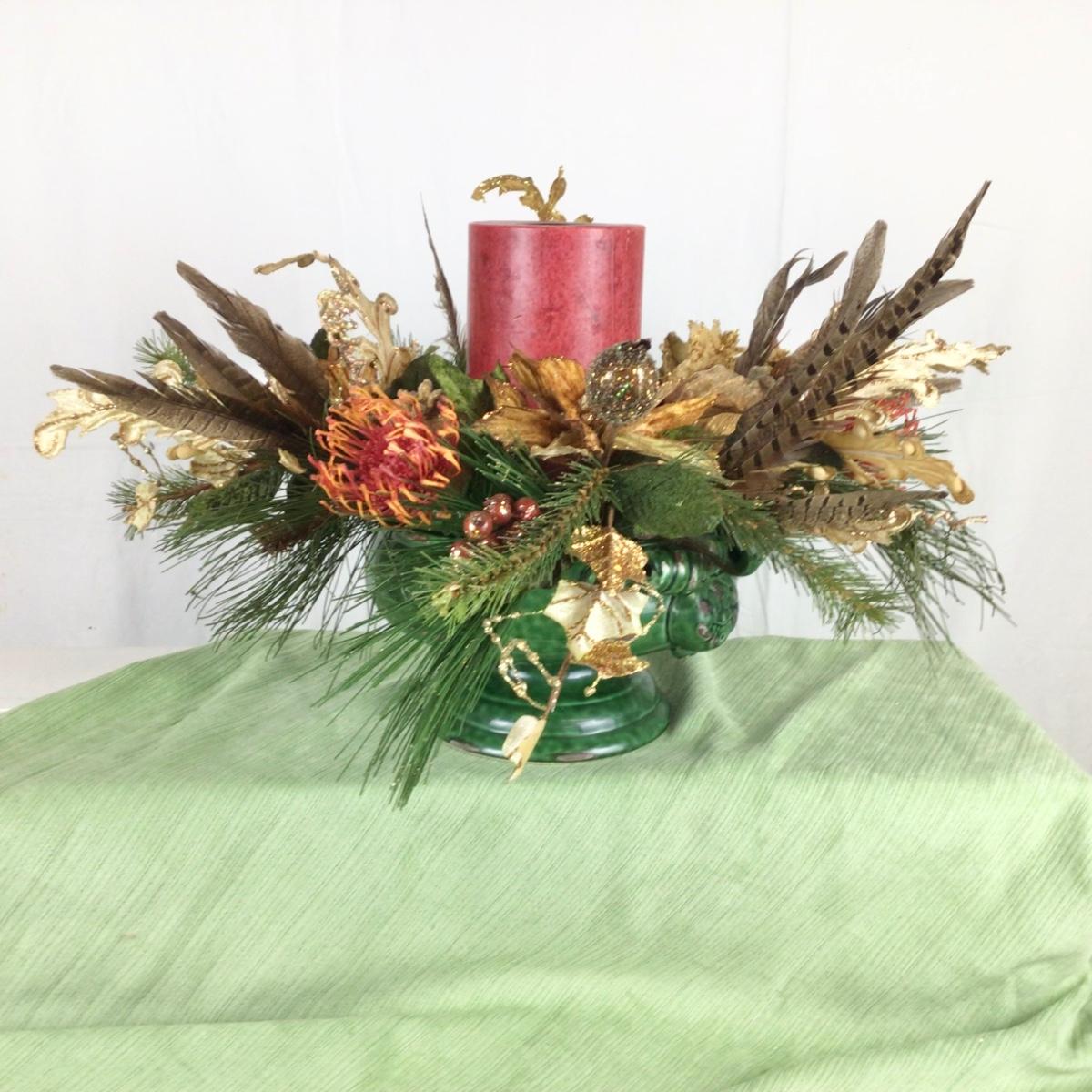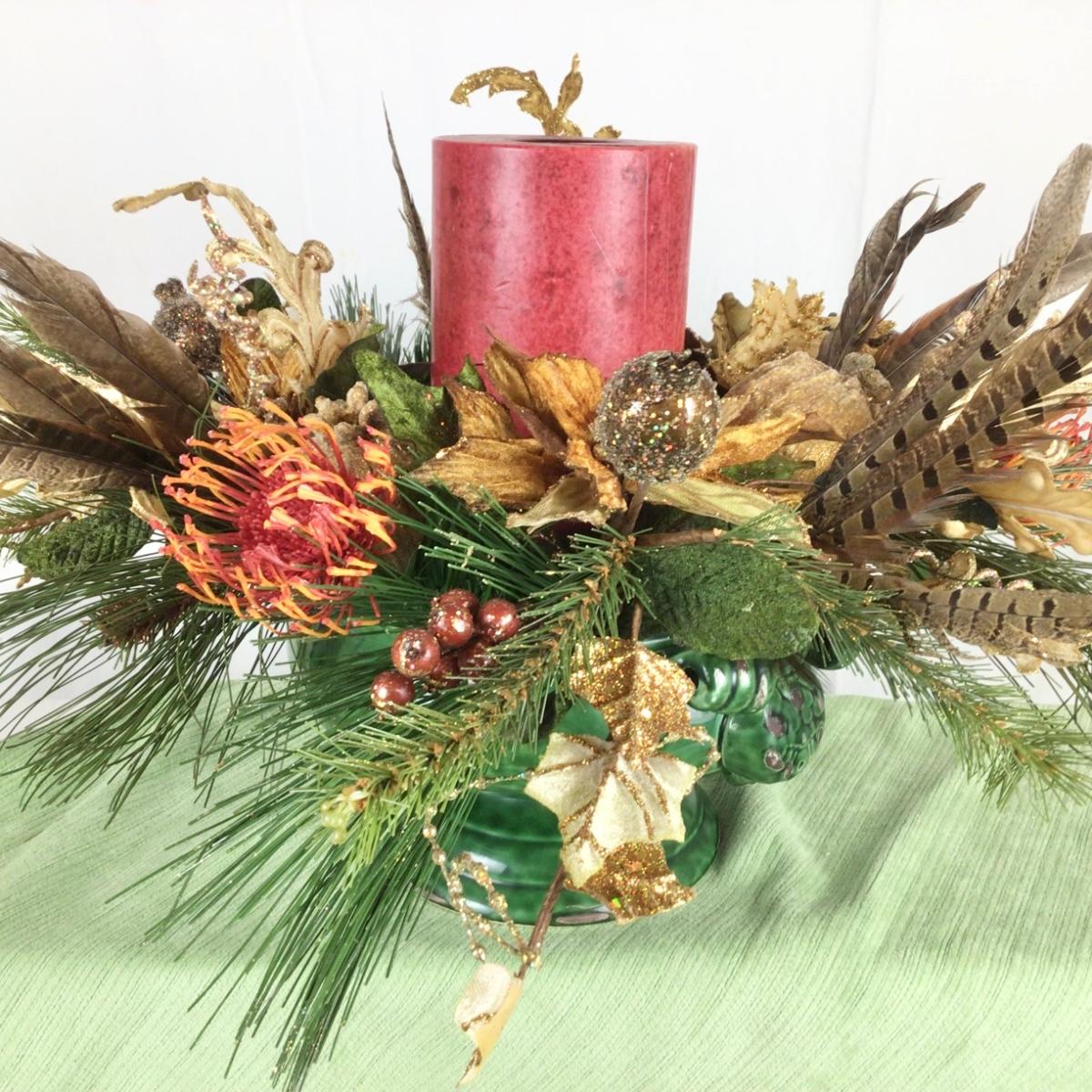 Lot.1552. Candle Protea with pheasant feathers