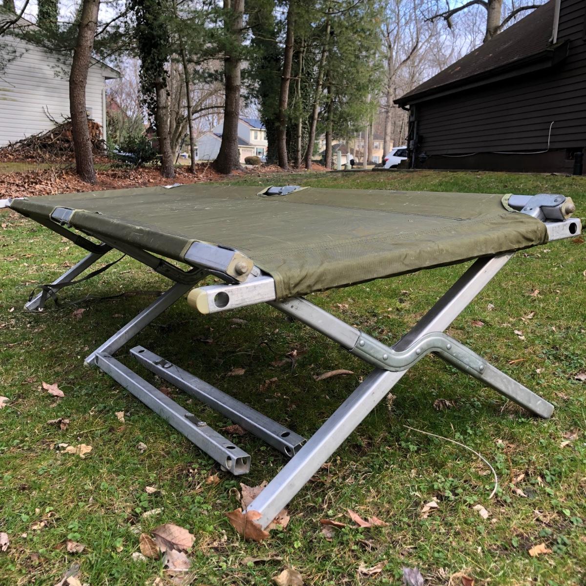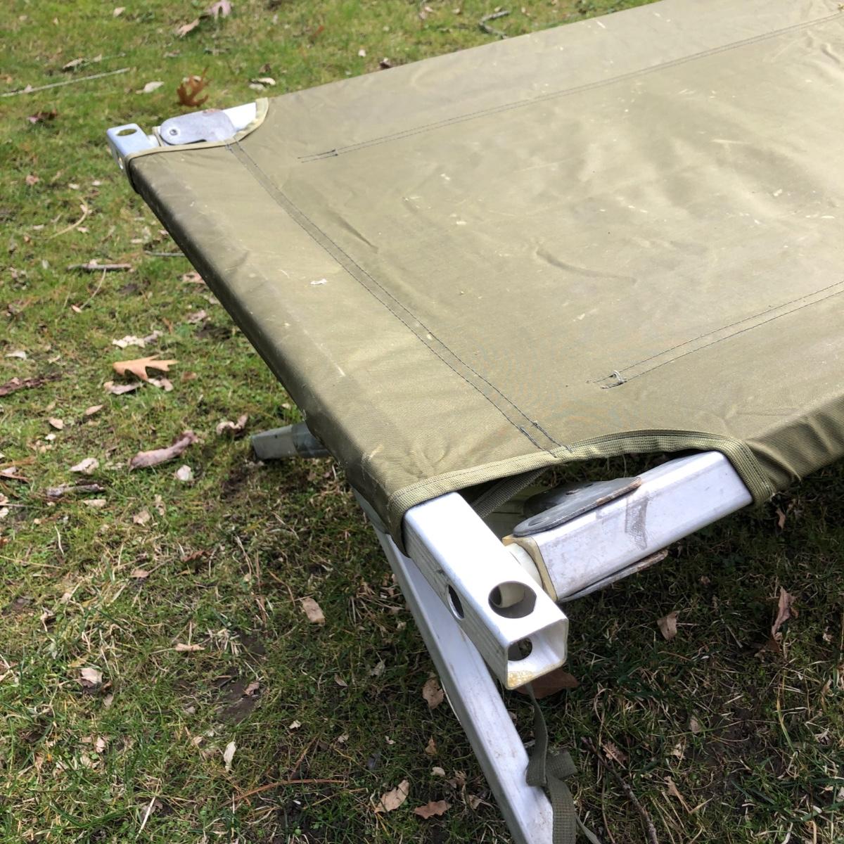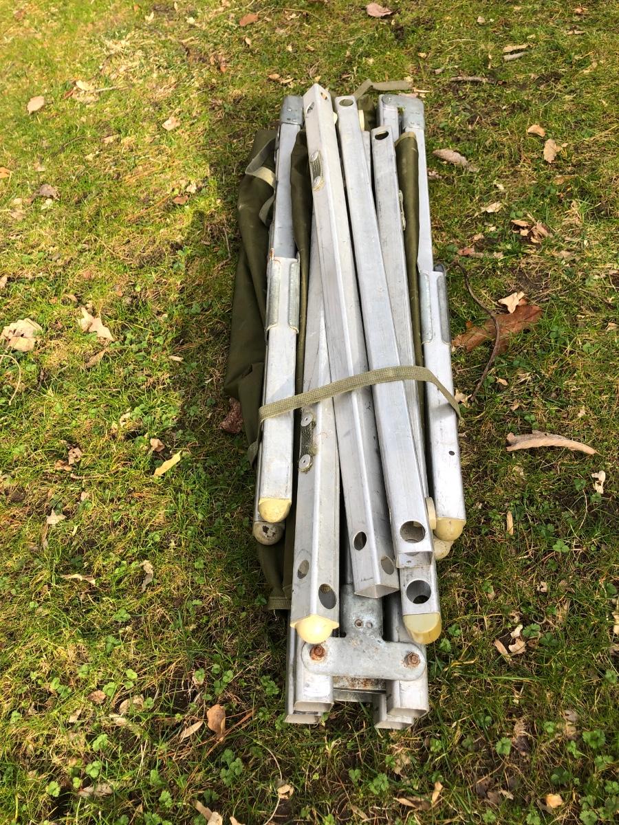 Cot has extra pieces when put together. Includes bedding roll and tarp.
