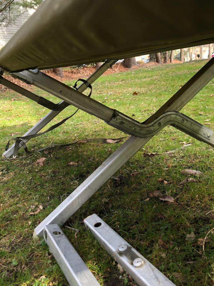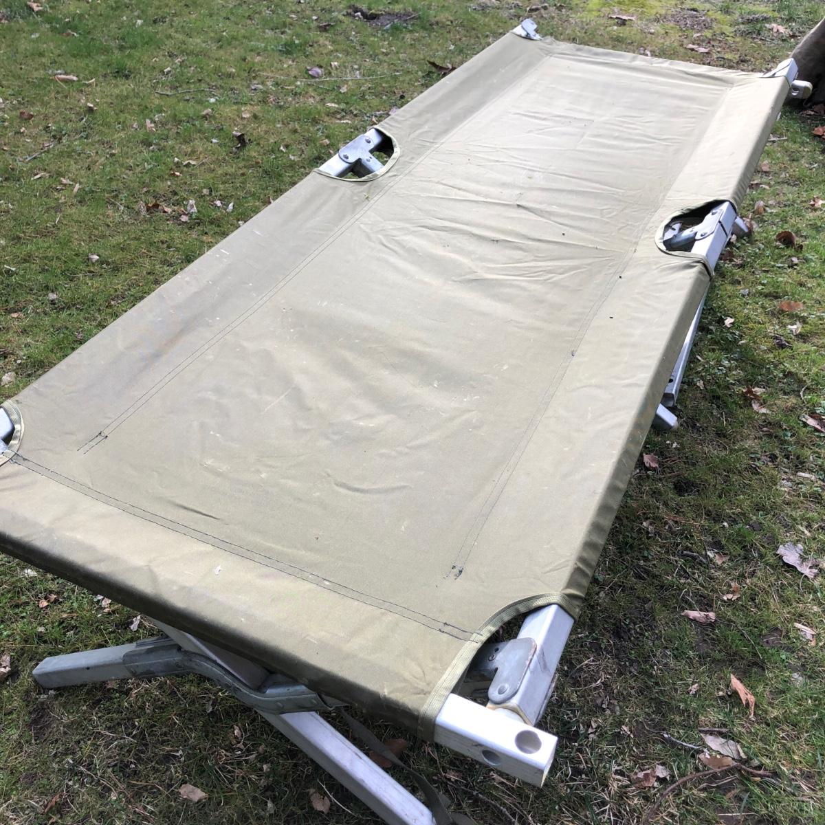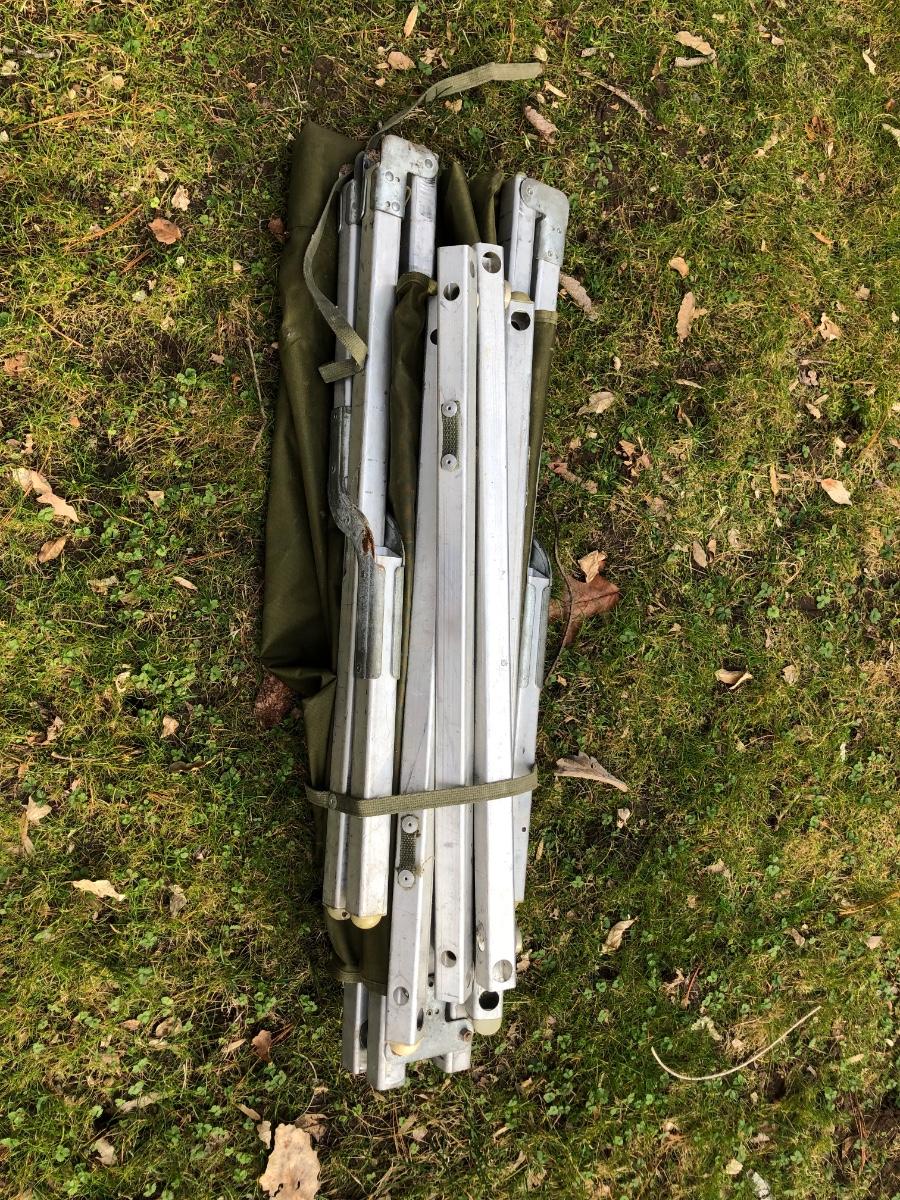 Cot has extra pieces when put together. Includes bedding roll and tarp.