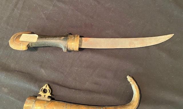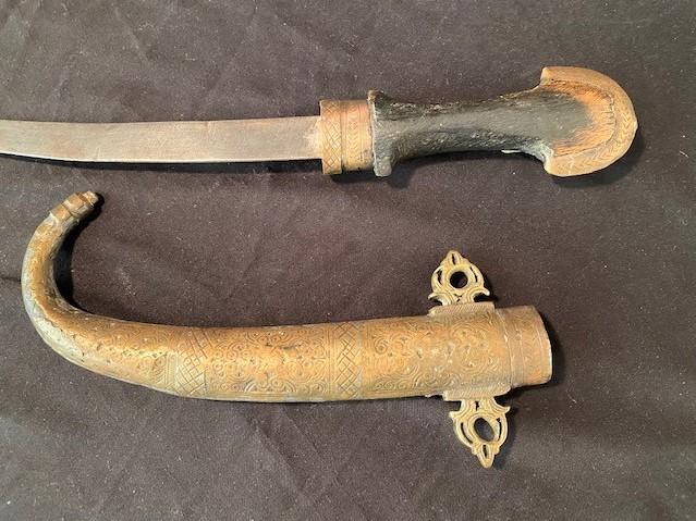 Comes with bronze/brass scabbard. Estimated weight of lot: 5lbs. Measurement: 15 1/2"L x 4"W