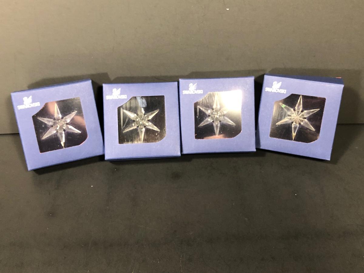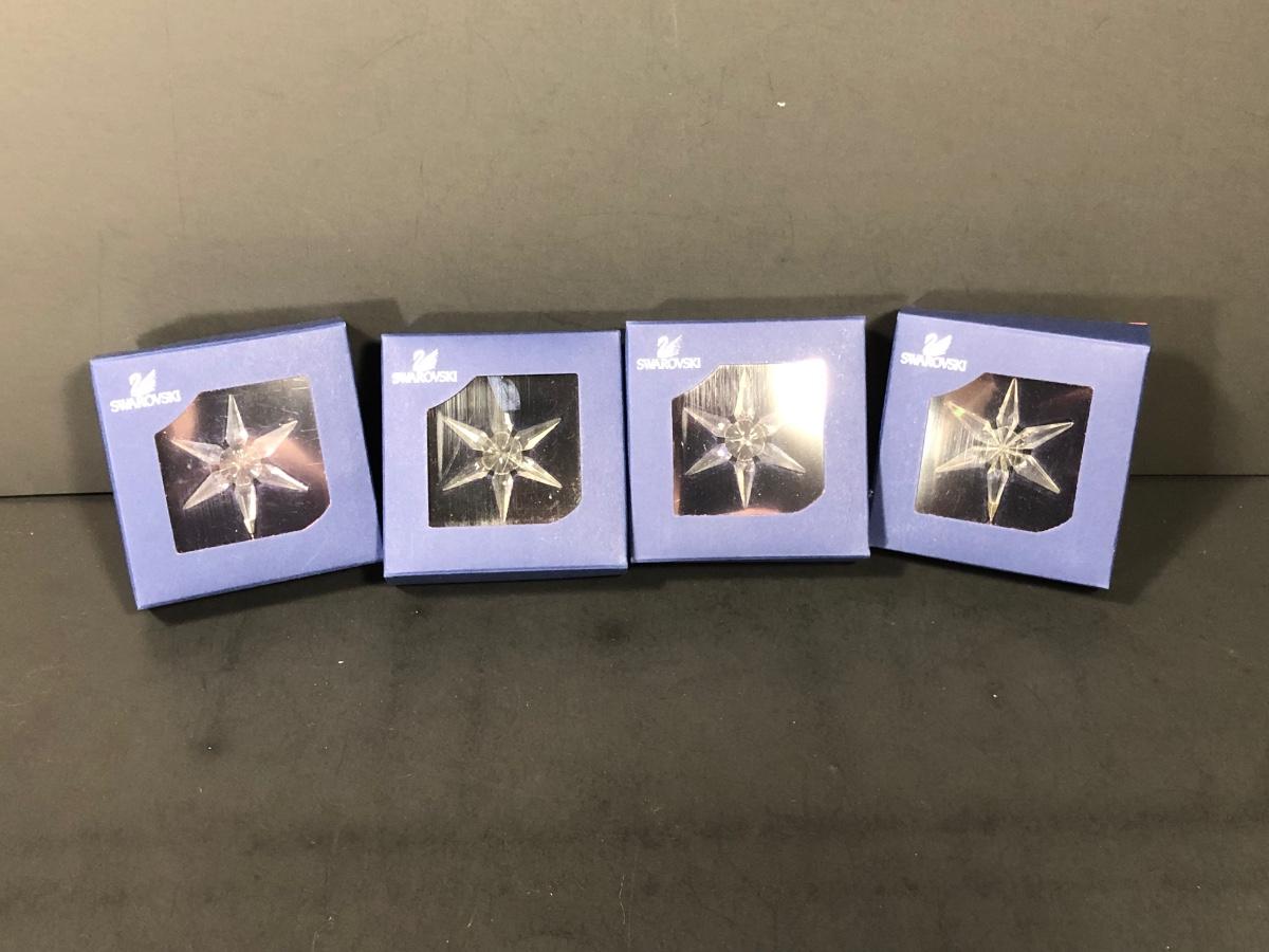 Four crystal "Little Star" ornaments made by Swarovski in Austria. Ornaments come in their original boxes.