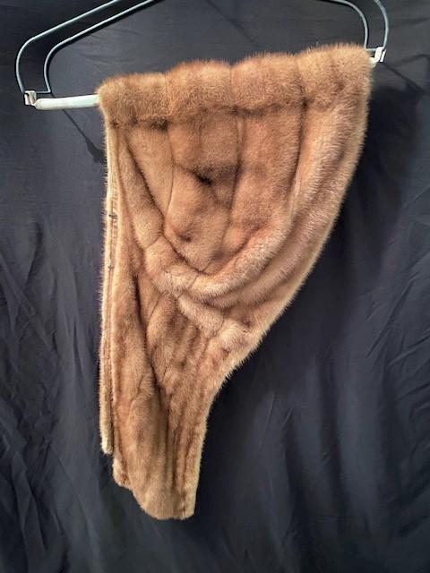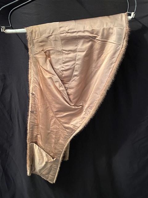 Pocket is pulling away. Appears to be mink. Estimated weight of lot: 5lbs. Measurement: 65"L (approximately)