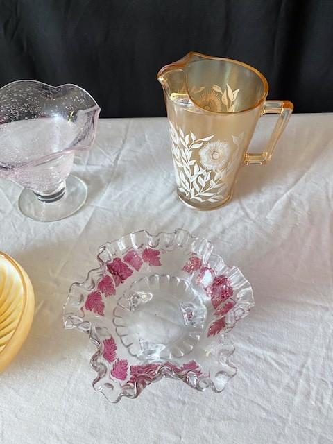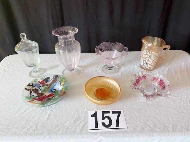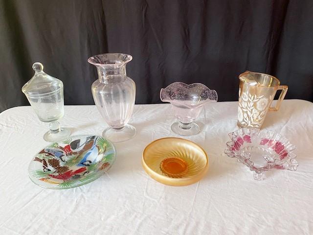 Includes Magnolia glass, etched glass, and more. Total of 7 pieces.