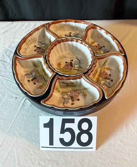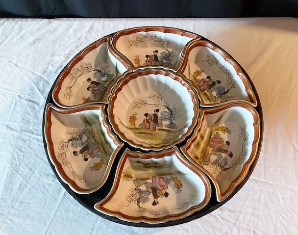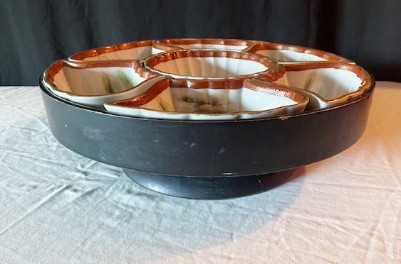 Seven dishes in revolving stand. Measurement: 4"H x 13"W