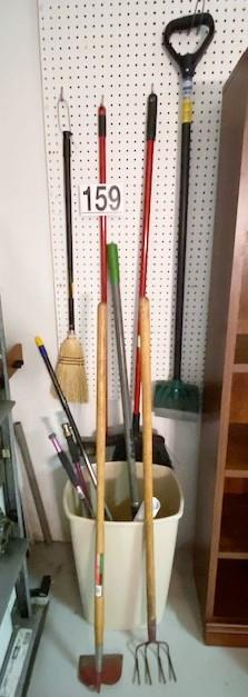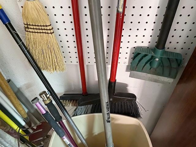 Includes: broom, brushes, hoe, o-rack-,shovel, garden stakes & more.