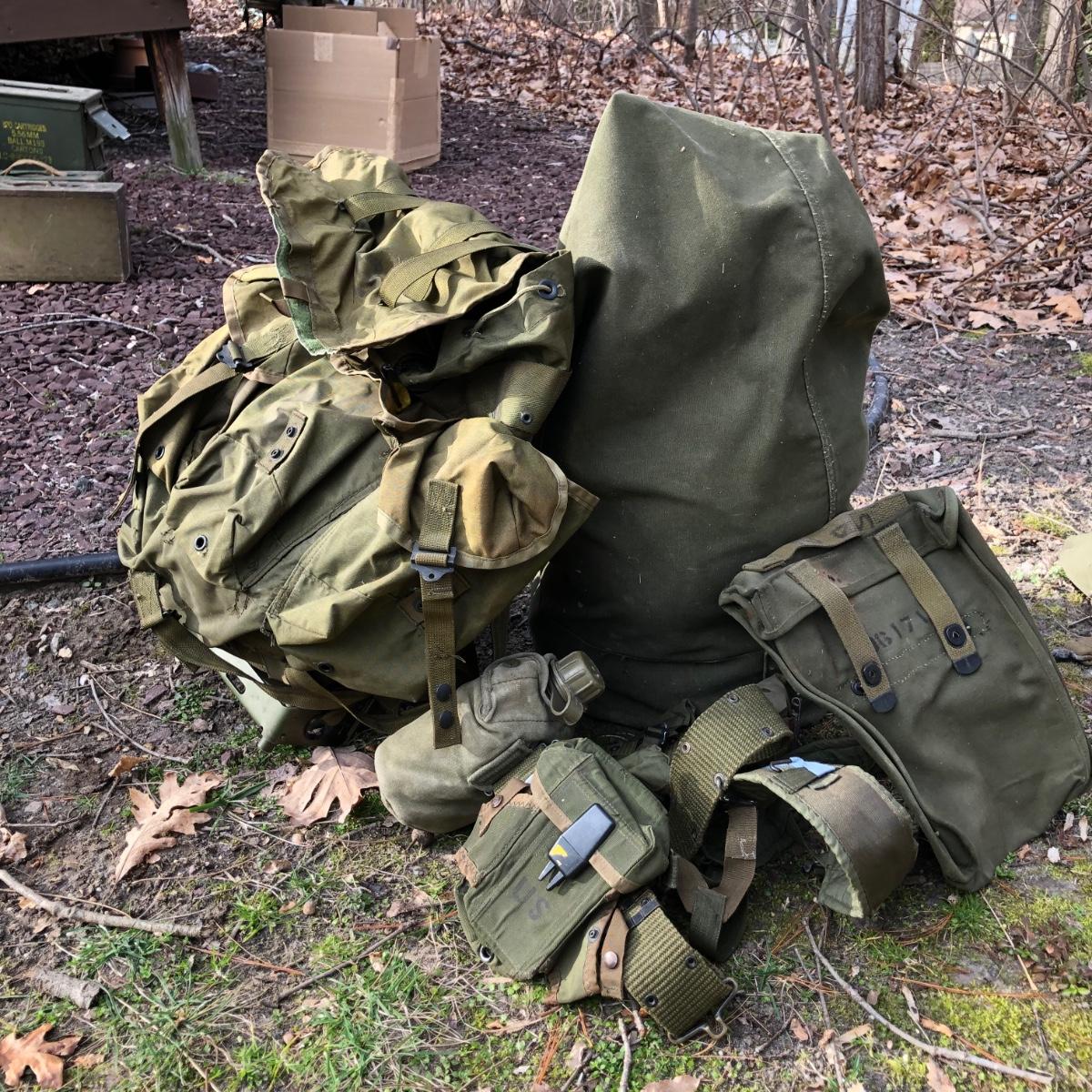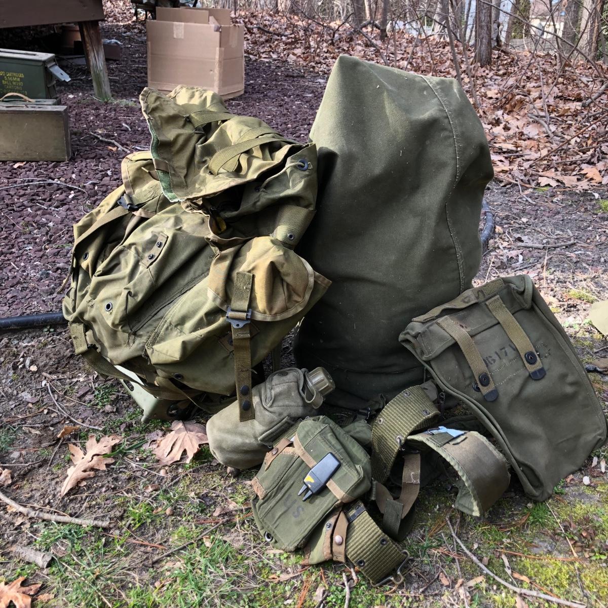 Includes one unopened US Military duffel bag, a backpack, suspender belt with attachments and more.