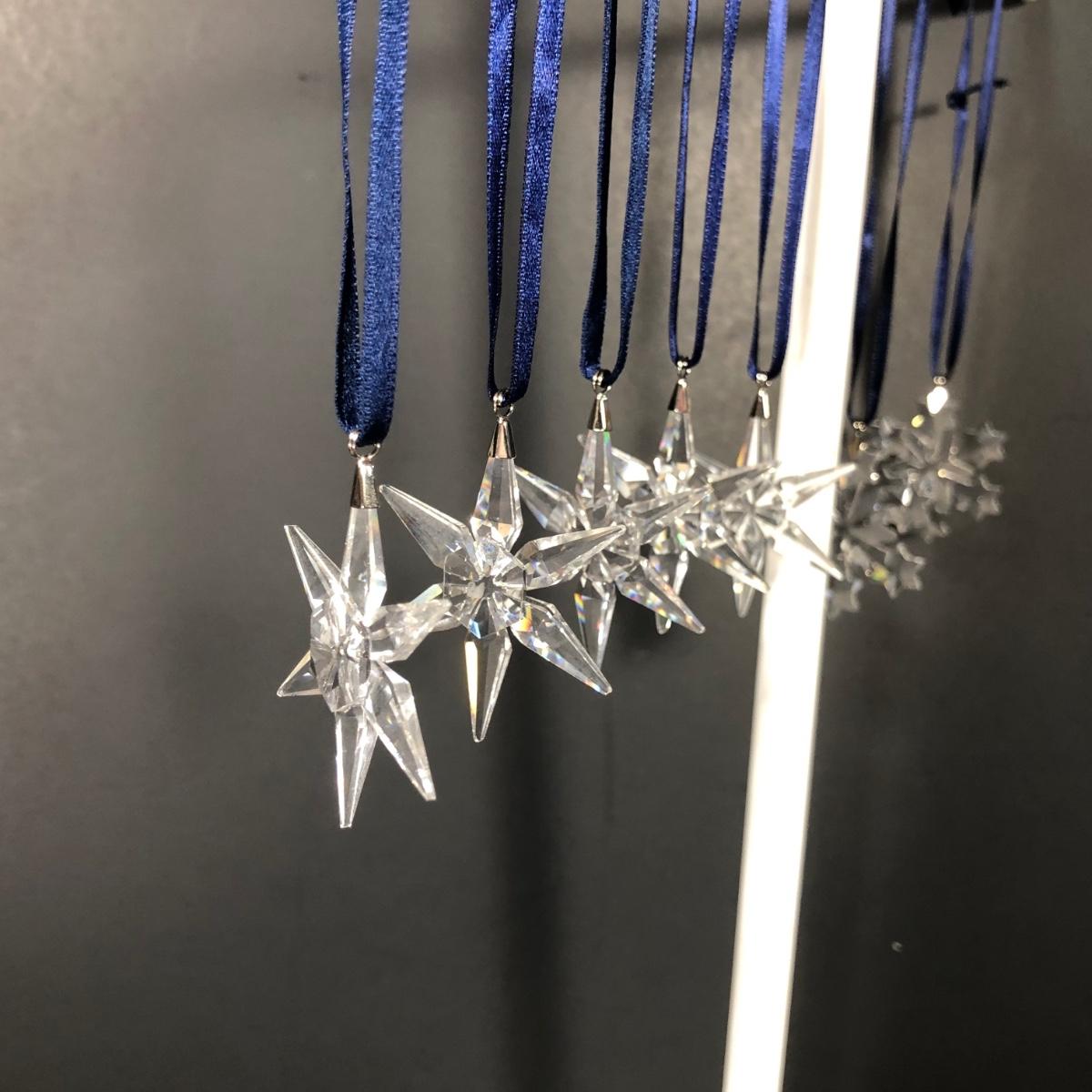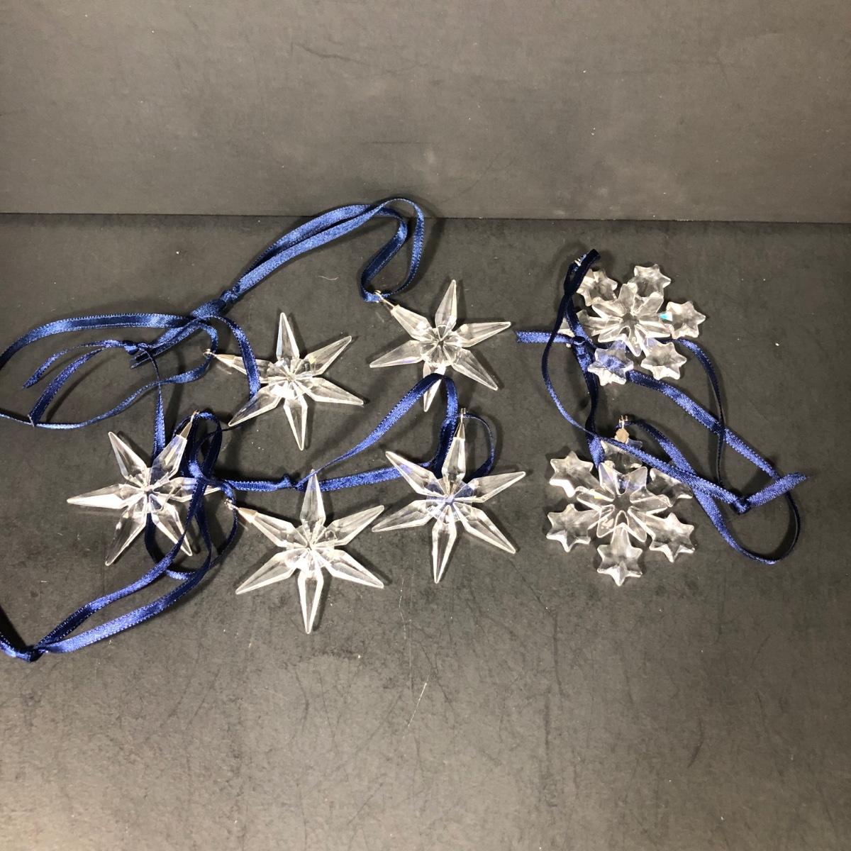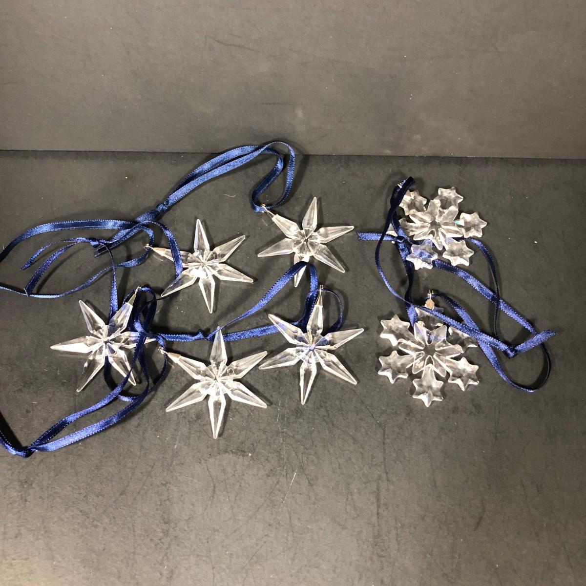 Includes five crystal "Little Star" ornaments and two snowflake ornaments made by Swarovski. No boxes included.