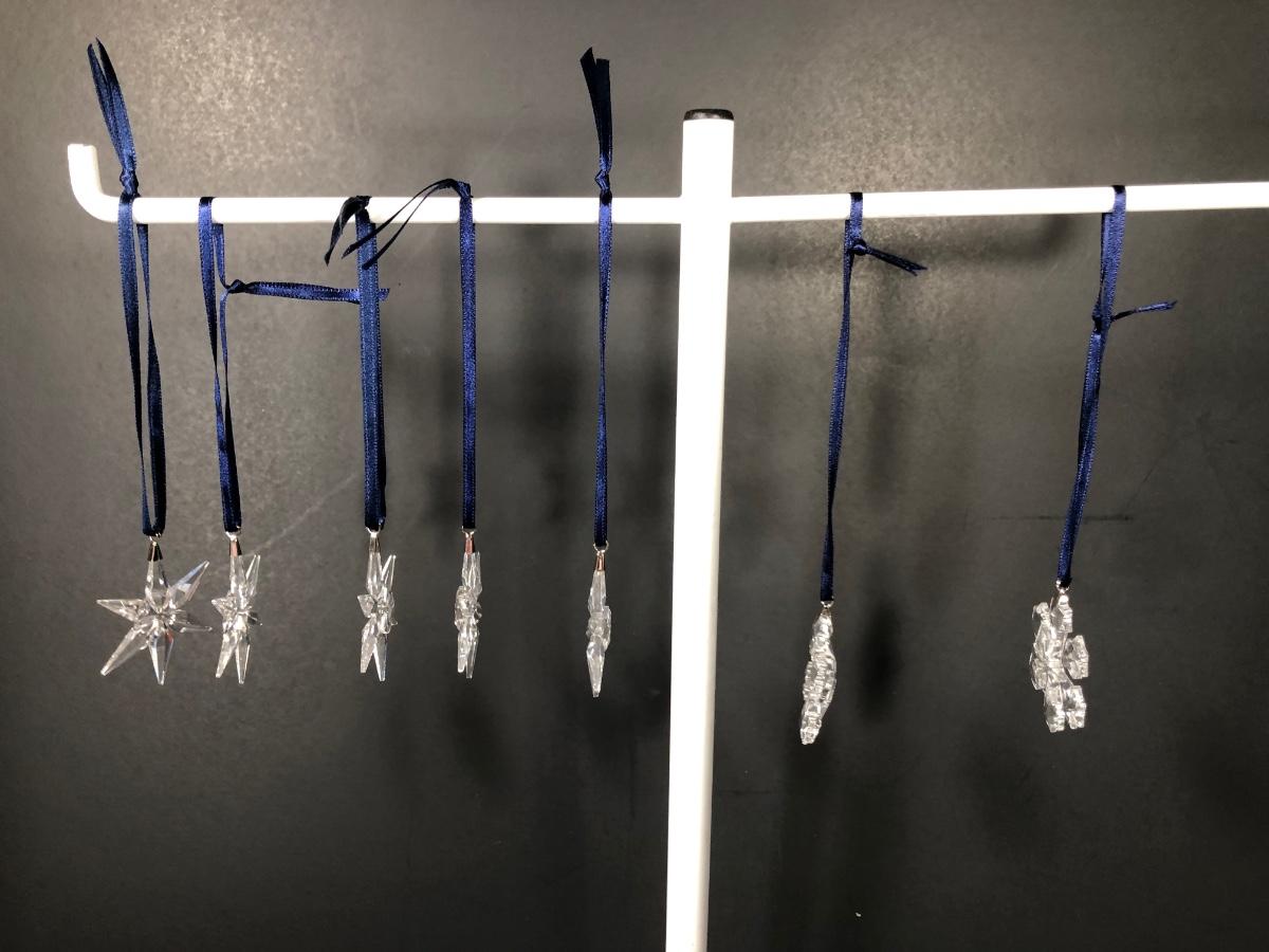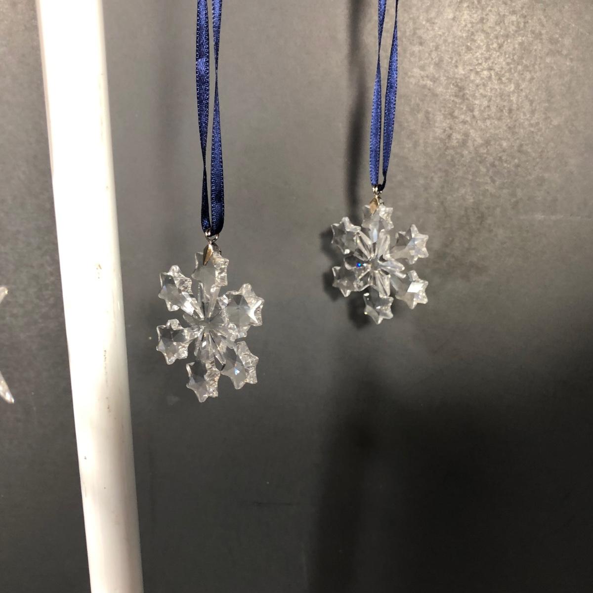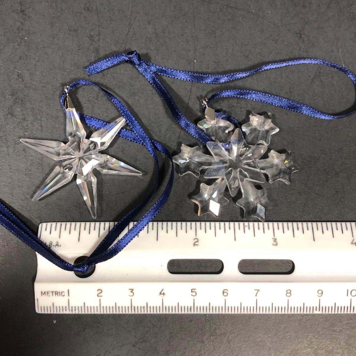 Includes five crystal "Little Star" ornaments and two snowflake ornaments made by Swarovski. No boxes included.