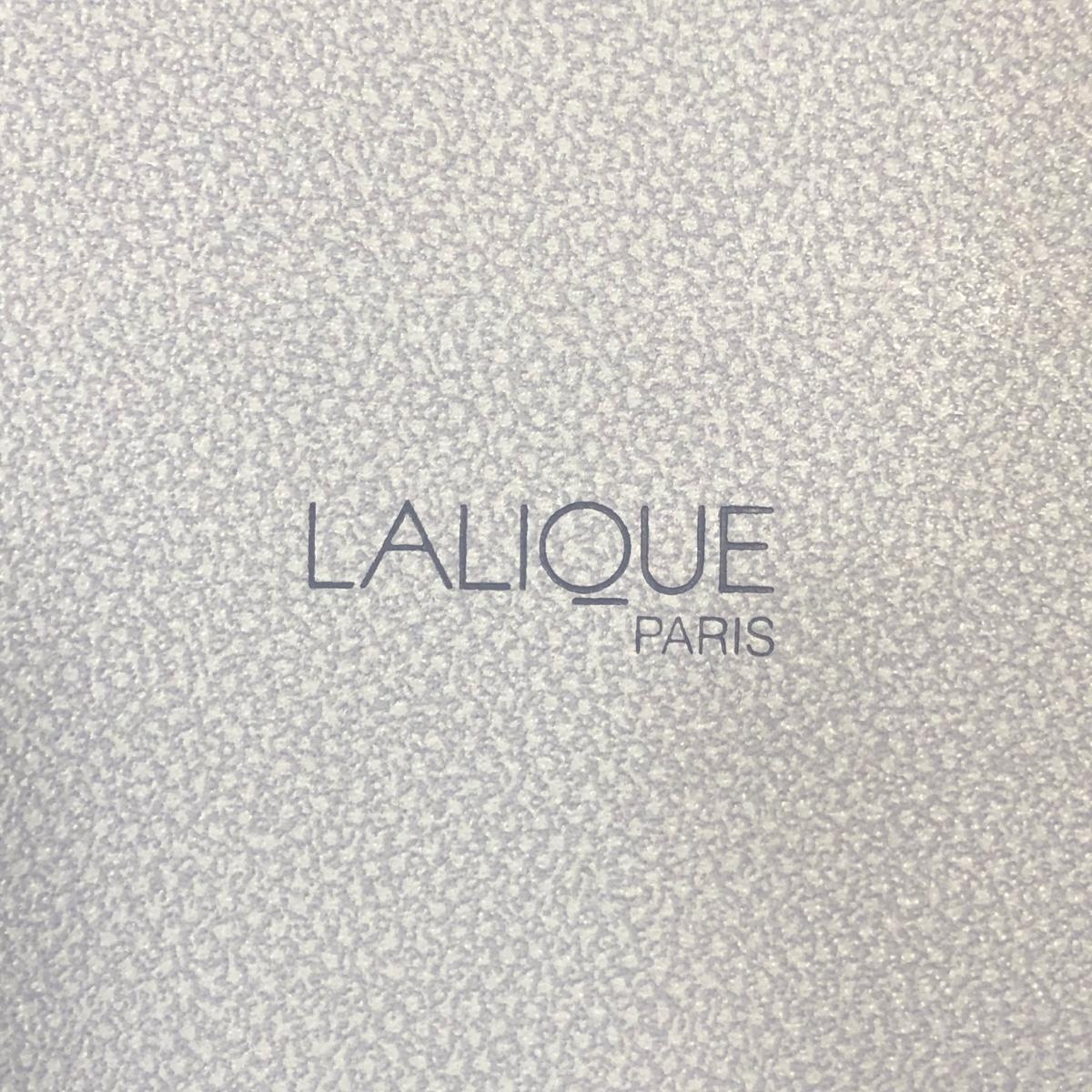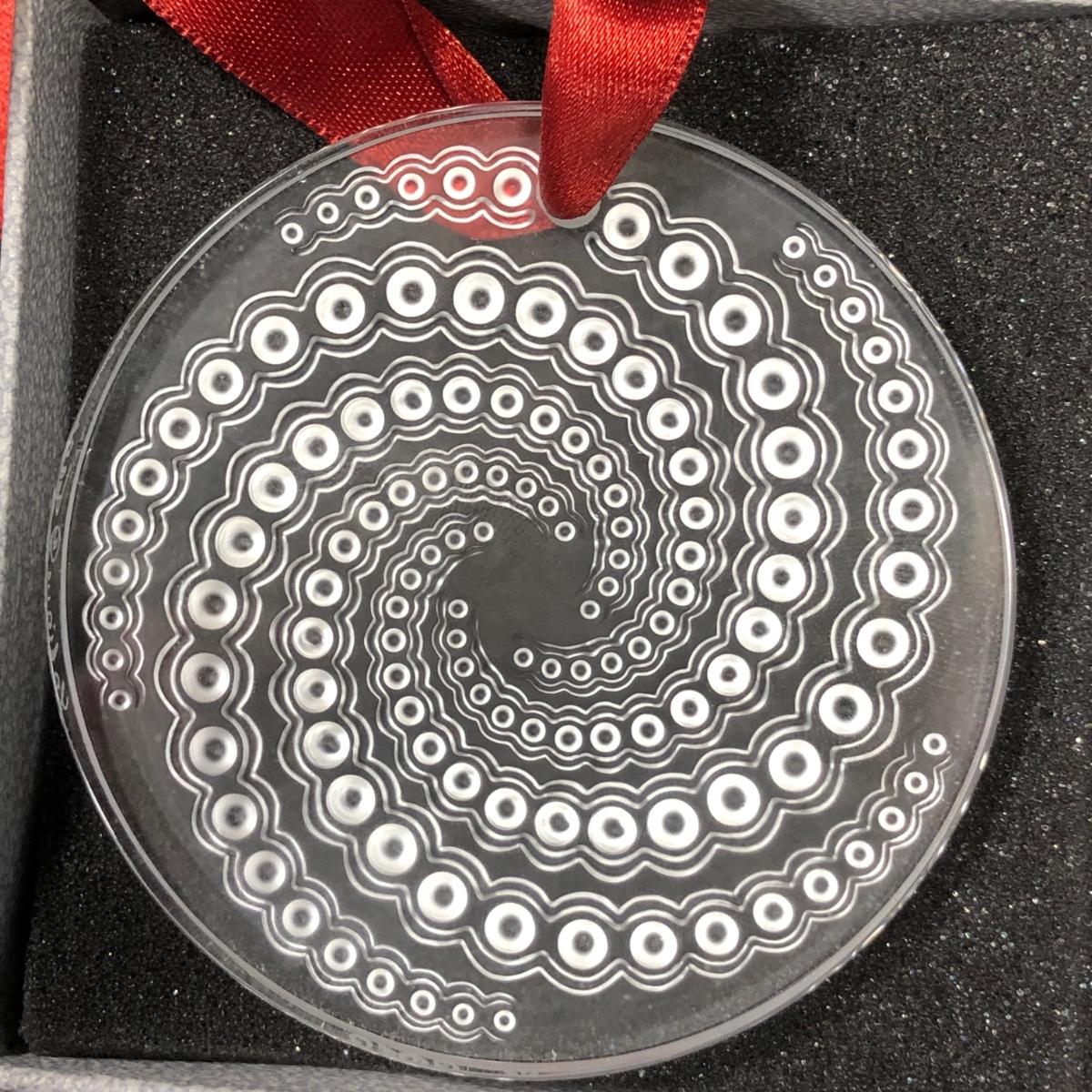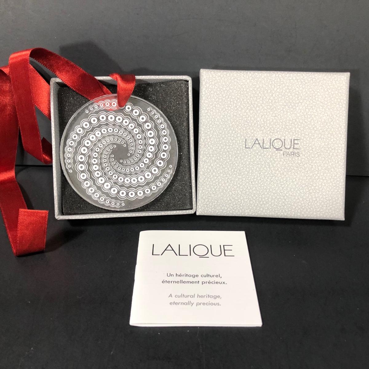 Includes one clear crystal ornament with red ribbon made by LaLique in Paris, France.