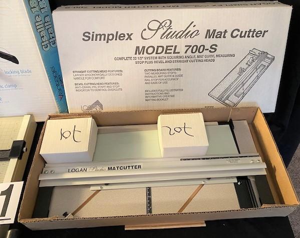 Logan Simple Mat Cutter, Vantage paper trimmer. Estimated weight of lot: 20lbs. Measurement: 26" x 16" x 6" (largest)