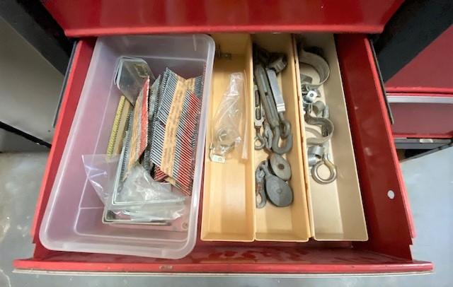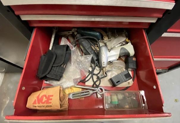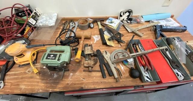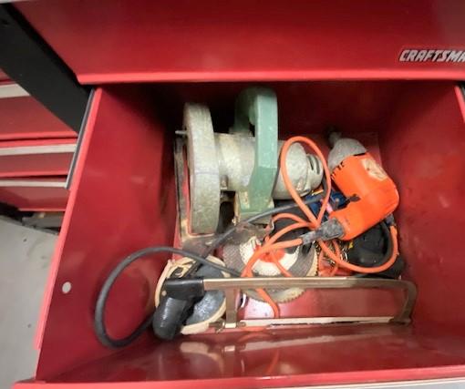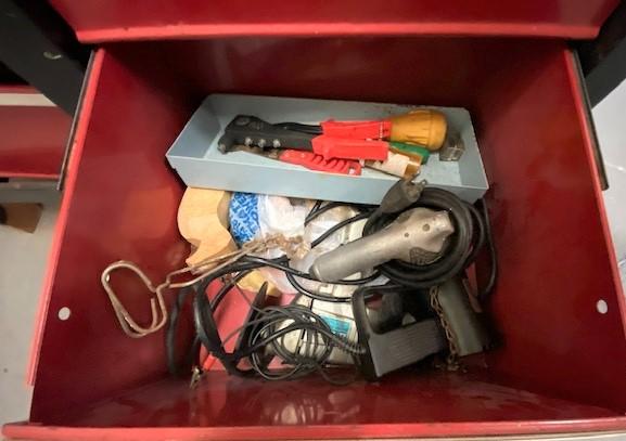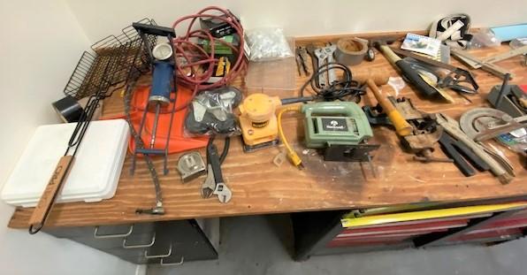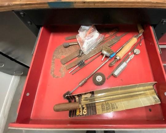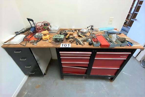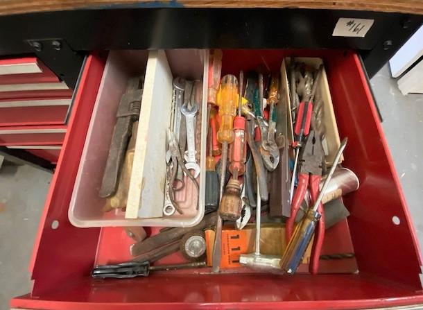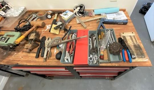 Steel Craftsmen tool chest with worksurface & assorted tools. Measurement: 43"L x 33"H x 18"D (tools chest itself)