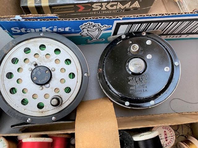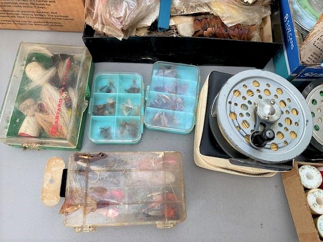 Including: fly reels from Orvis, Martin, Assorted dry flies & fly tying materials.