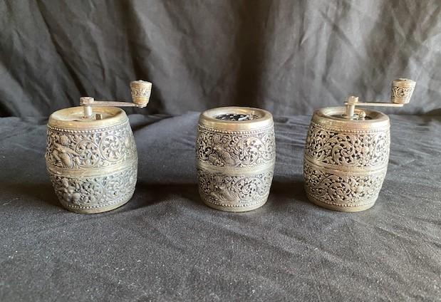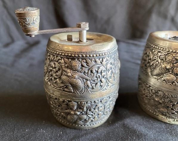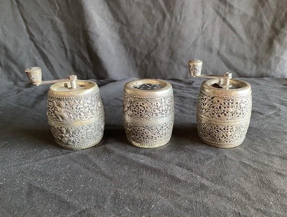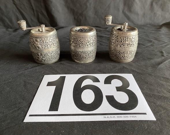 LOT#163J: Marked T.900 Silver Cambodian Pepper Grinders& Salt [316g]