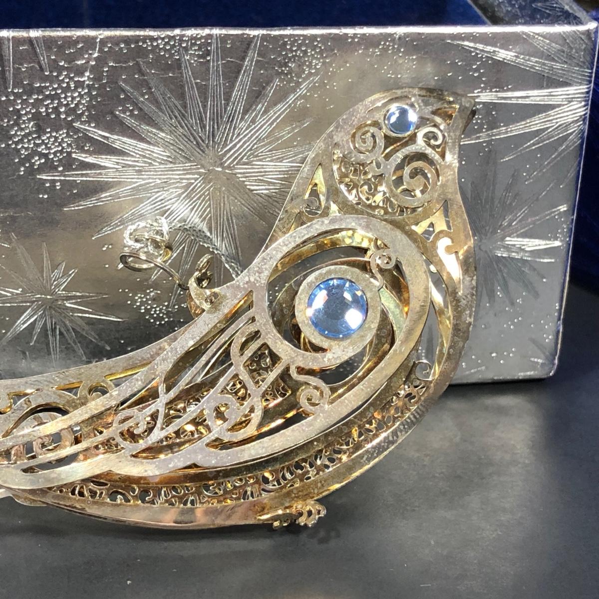 2 Jeweled Doves, Spanish Baroque Cross, and 2002 Christmas Bell.