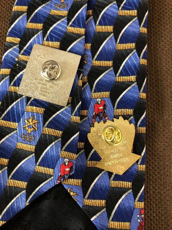 Lot#166 Men's Neck Ties D 1- Olympic Tie Hockey plus pins