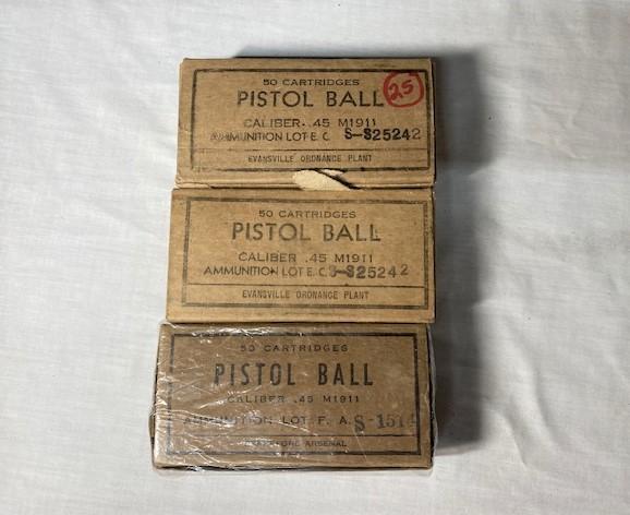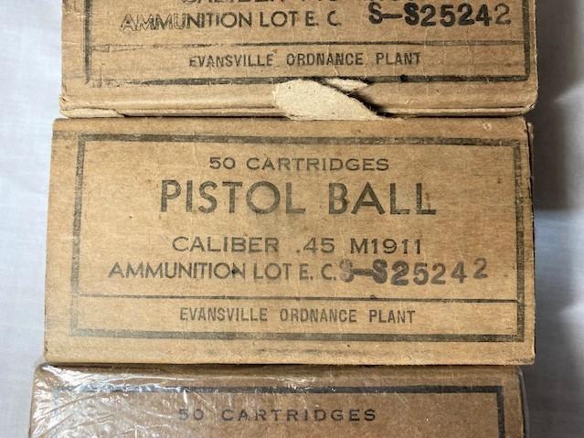2 boxes. 50 rounds per box. Appears to be original issue. 1 box has 25 rounds. 75 rounds total. Estimated weight of lot: 3lbs. Measurement: 5" x 4"