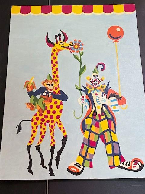 LOT#168G: Circus Themed Acrylic on Cardboard