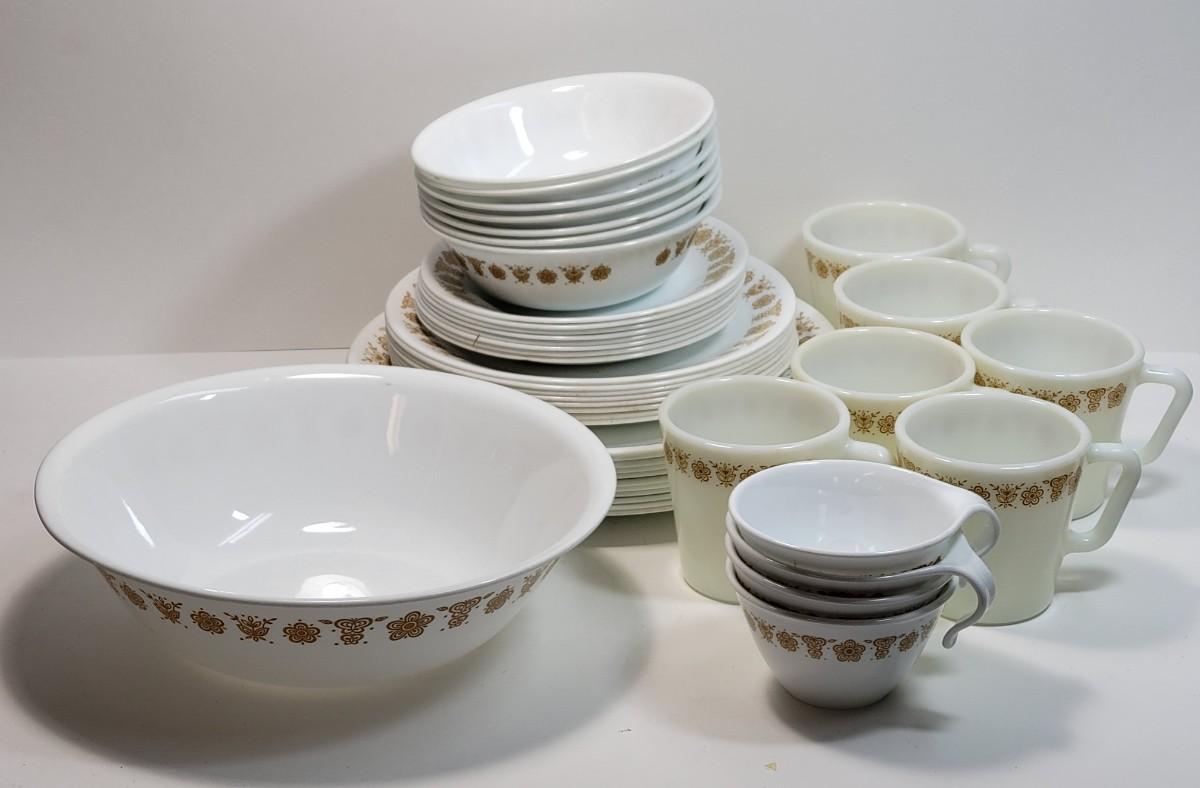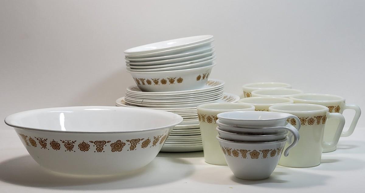 LOT169: Vintage 1970's Butterfly Gold Corelle /Pyrex Dinnerware